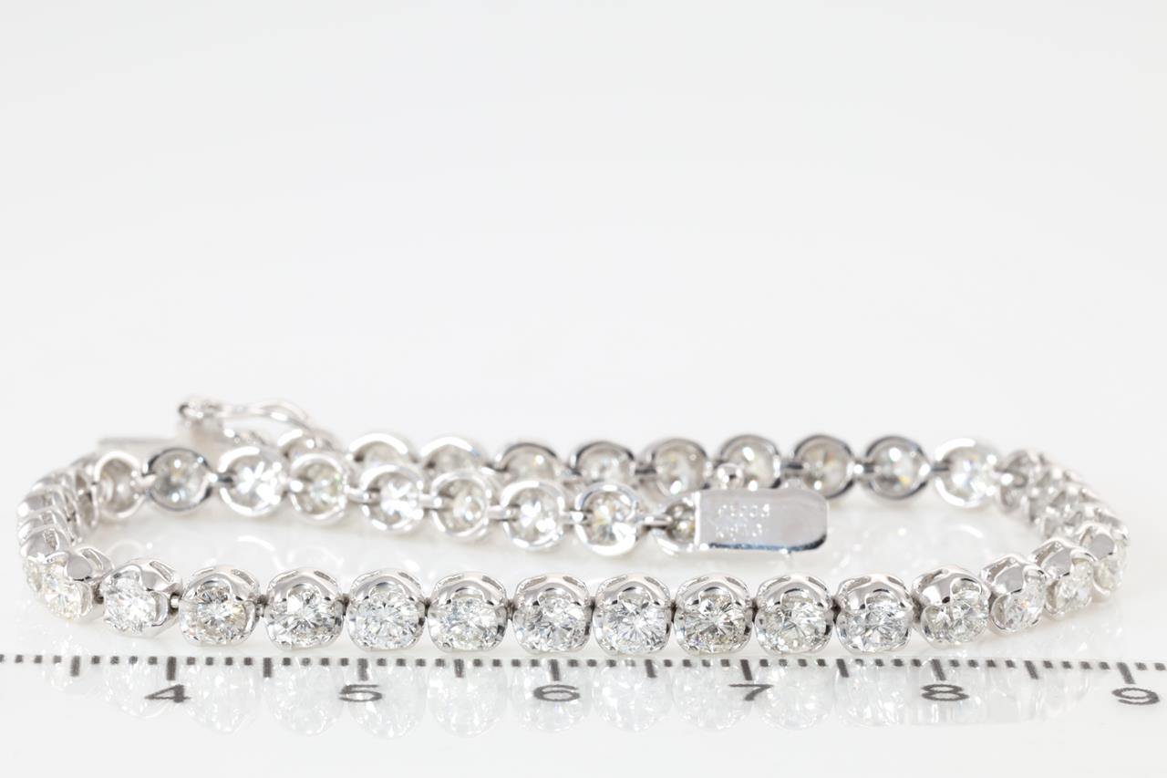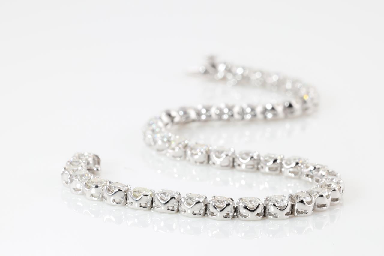 Diamond Tennis bracelet wiith round Diamonds totalling 5.00cts (Estimated grading: G-H SI-P1). 18ct white gold. Lenght: 19.5cm. Weight: 16.27g. With Certificate #413793. (Pre-owned)