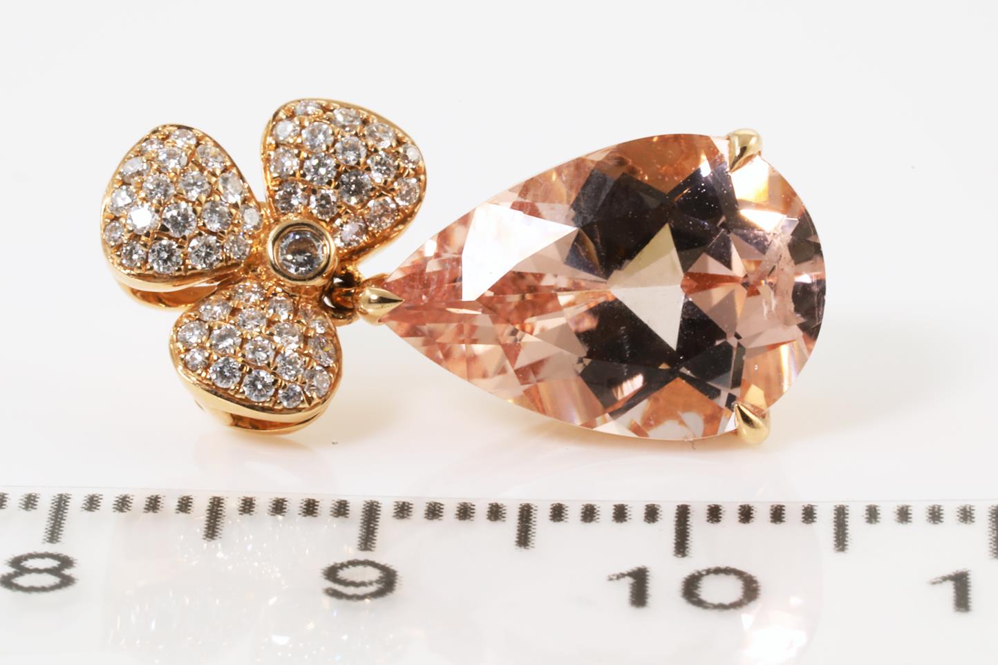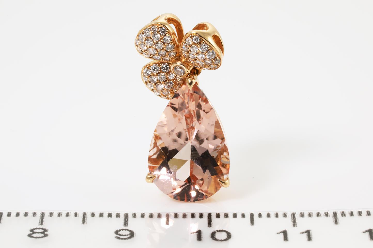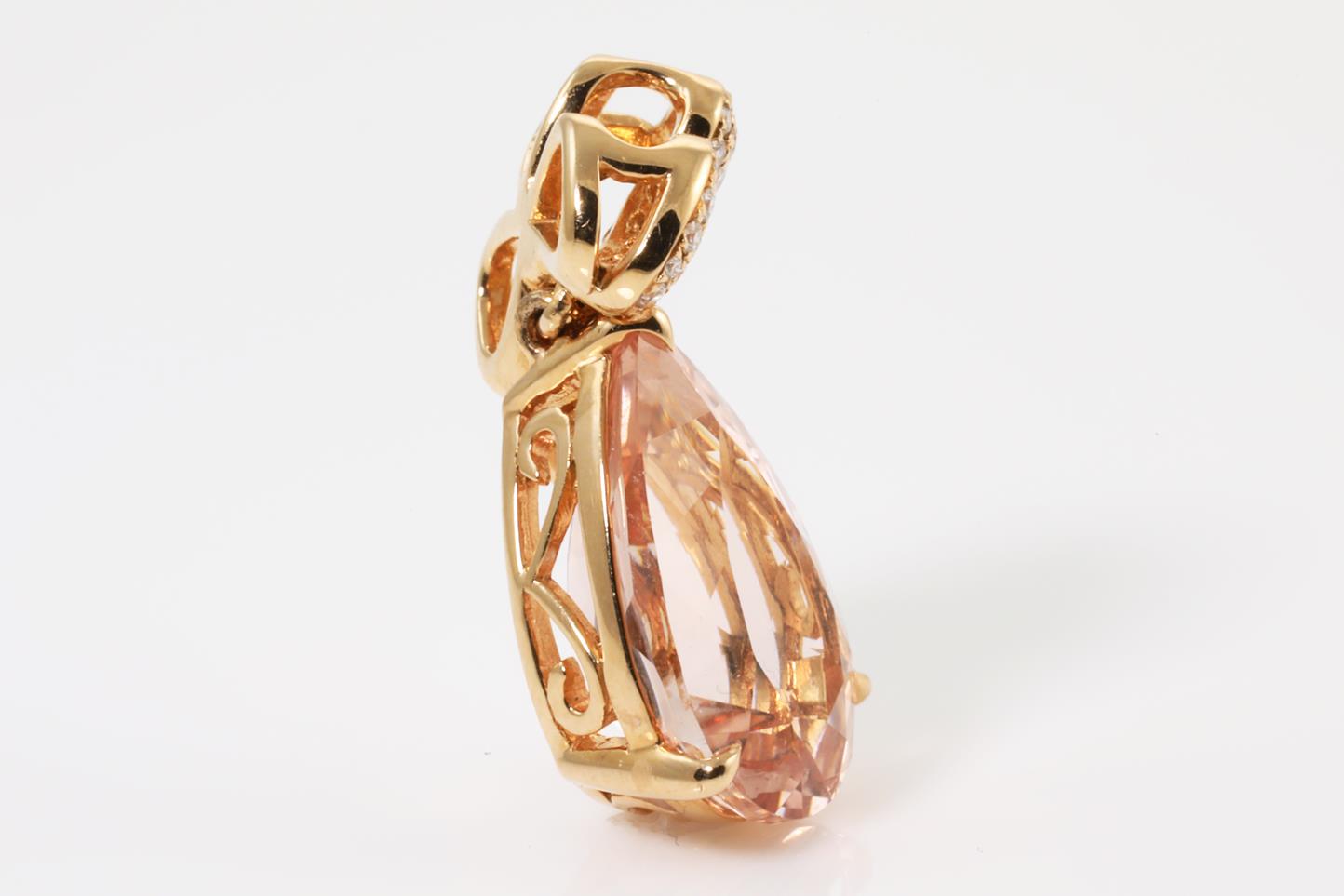 Morganite and Diamond pendant with pear shape Morganite of 5.09ct and Diamonds totalling 0.25cts. 18ct rose gold, no chain provided. Weight: 4g (Pre-owned)