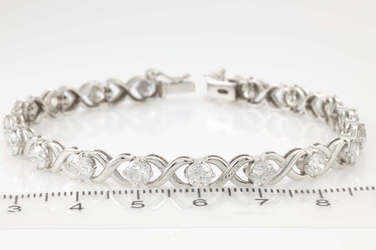 Diamond bracelet with round Diamonds totalling 5.18cts (Estimated grading: G SI1-SI2). 18ct white gold. Length: 18.5cm. Weight: 13.09g. With Certificate #413646 and GSL memo #AA64375. (Pre-owned)