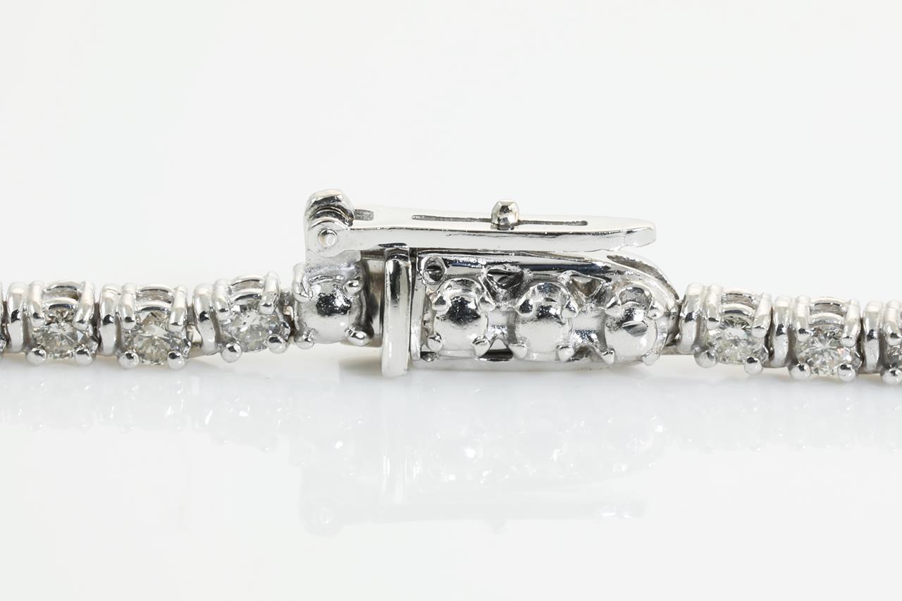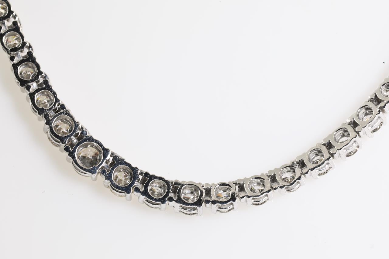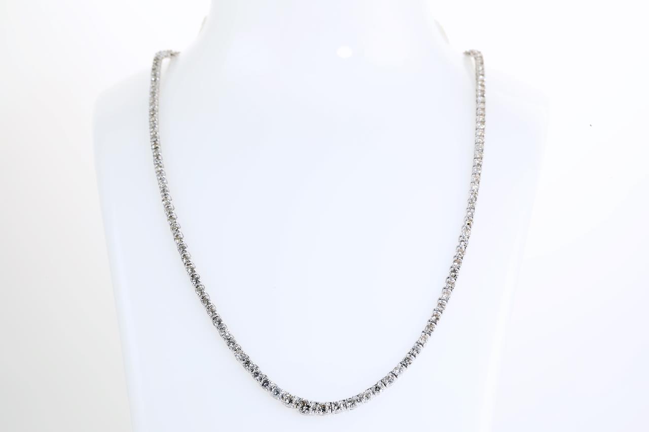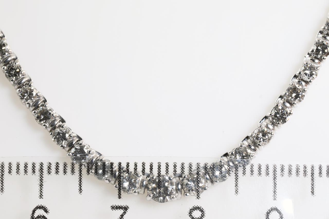 Diamond necklace with round Diamonds totalling 5.18cts (Estimated grading: G-H-I P1). 18ct white gold. Length: 41cm. Weight: 18.4g. With certificate #414172. (Pre-owned)