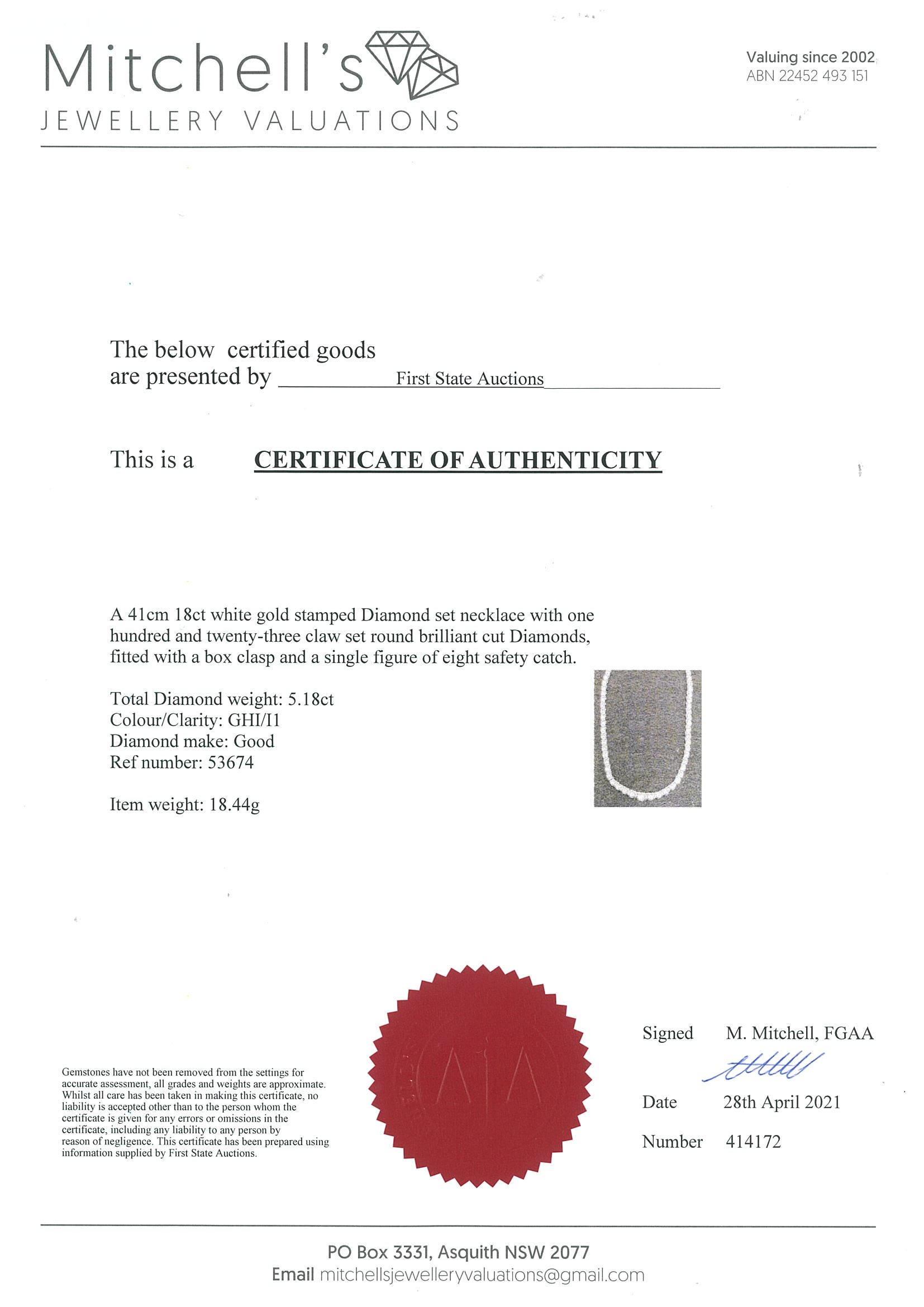 5.18ct Diamond Necklace | First State Auctions