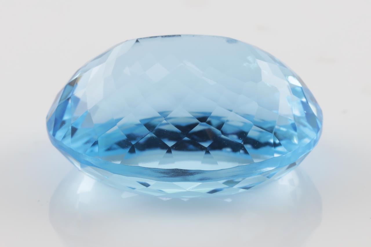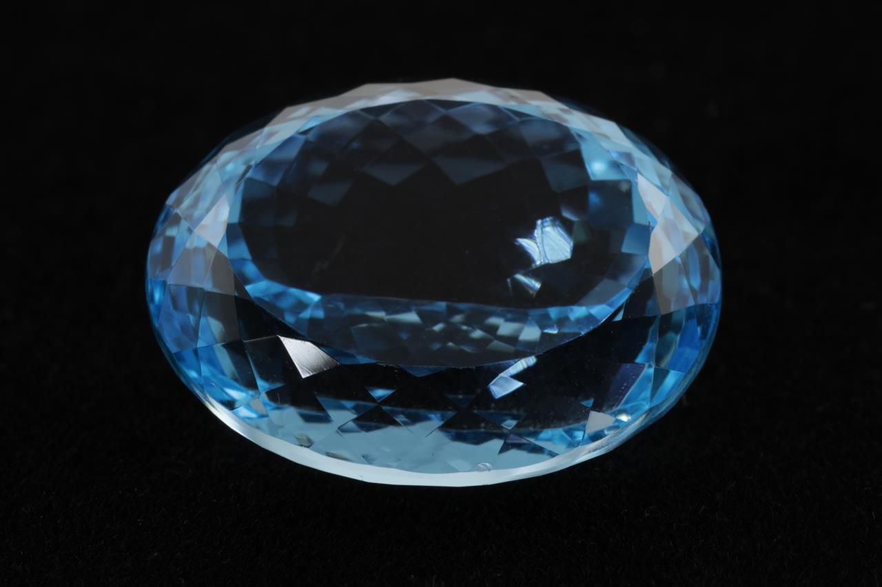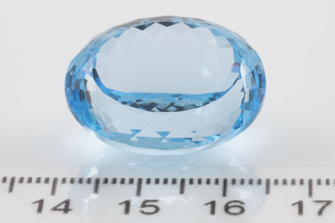A Loose oval Blue Topaz of 52.25ct. Size: 24.0 x 19.2 x 12.2mm. (New)