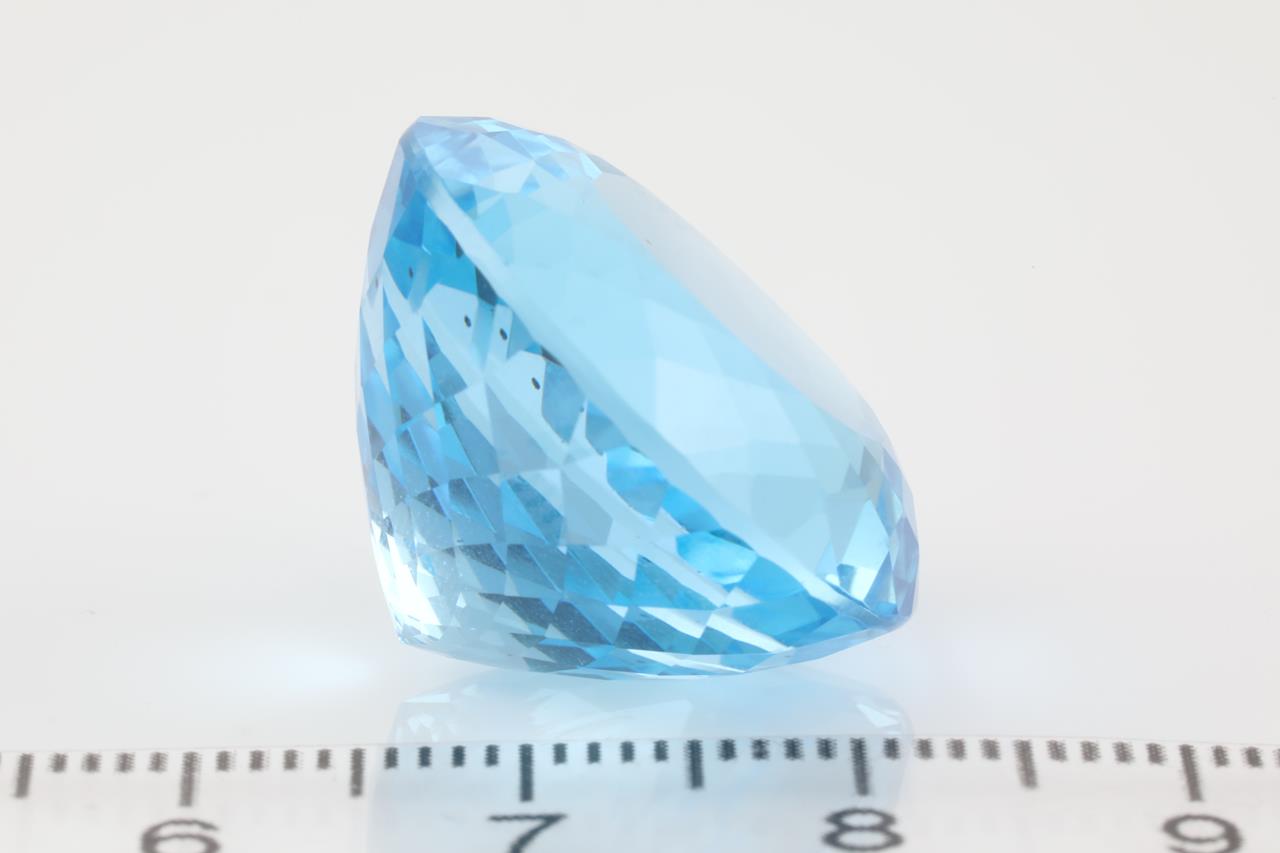 A Loose round Blue Topaz of 52.56ct. Size: 21.7 x 21.8 14.8mm (New).
