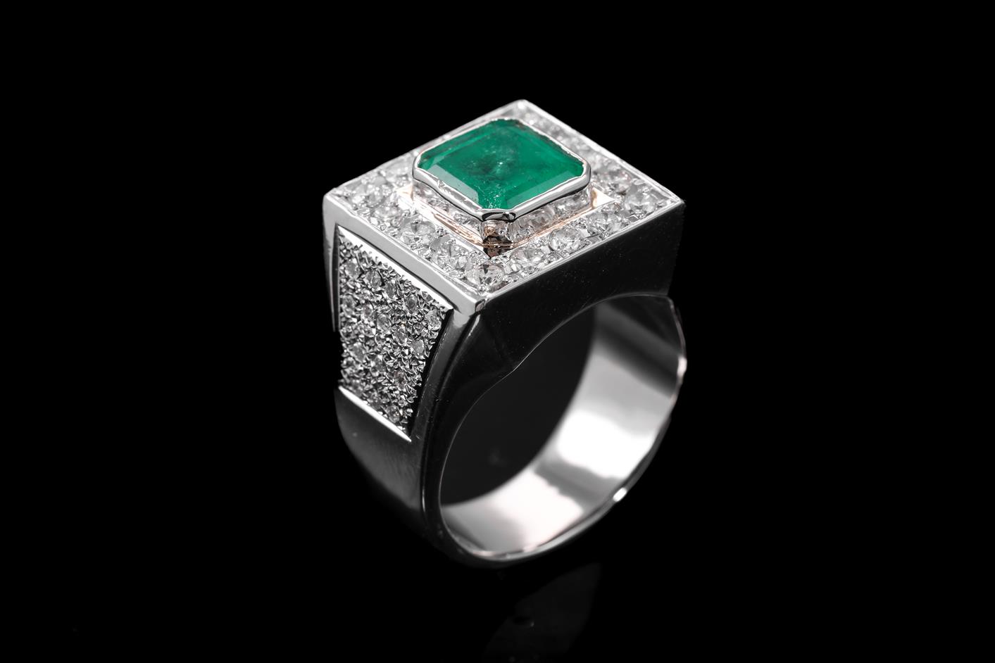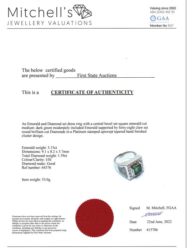 53g Platinum, Emerald and Diamond Mens Ring | First State Auctions