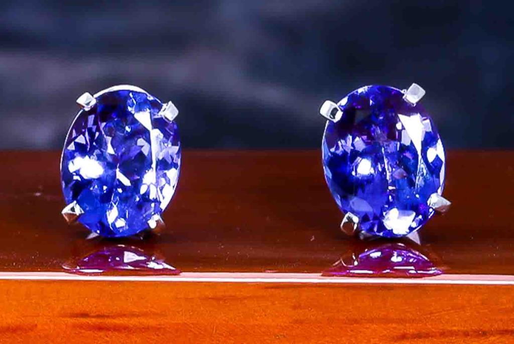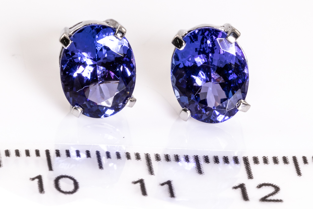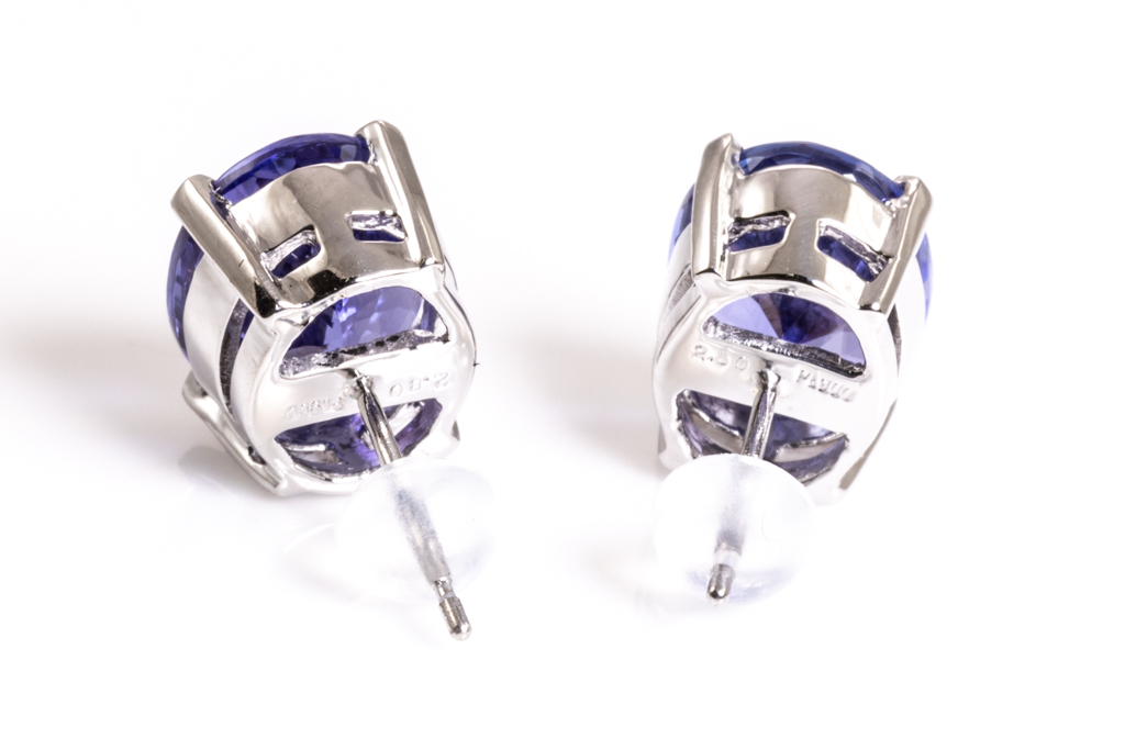 Tanzanite stud earrings with oval shape Tanzanites totalling 5.40cts. Platinum with silicon backs. Weight: 4.2g. (Pre-owned)
