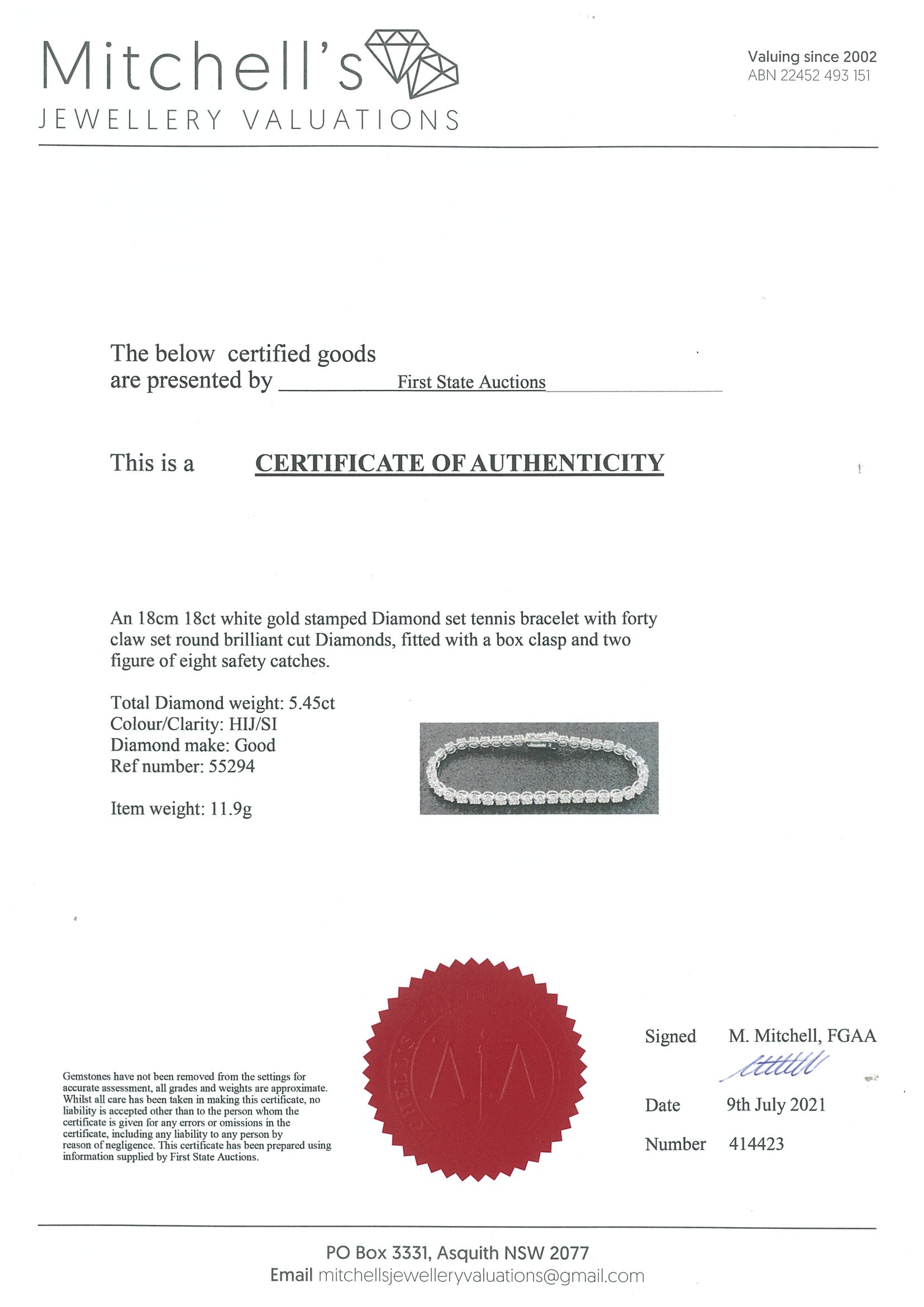 5.45ct Diamond Tennis Bracelet | First State Auctions