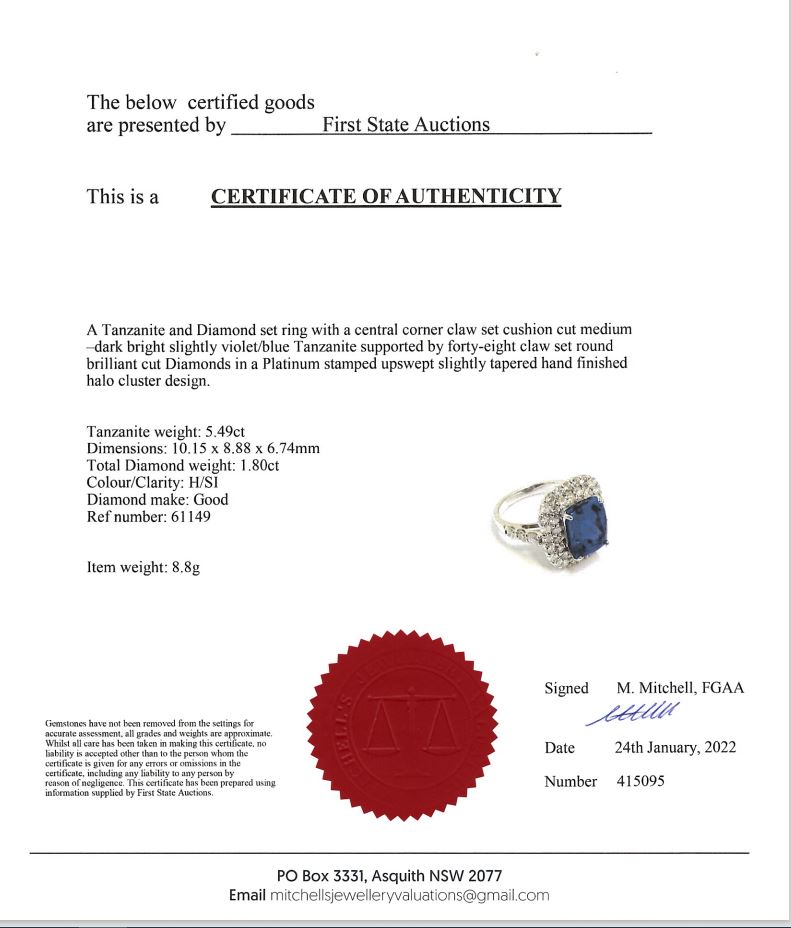 5.49ct Tanzanite and Diamond Ring | First State Auctions