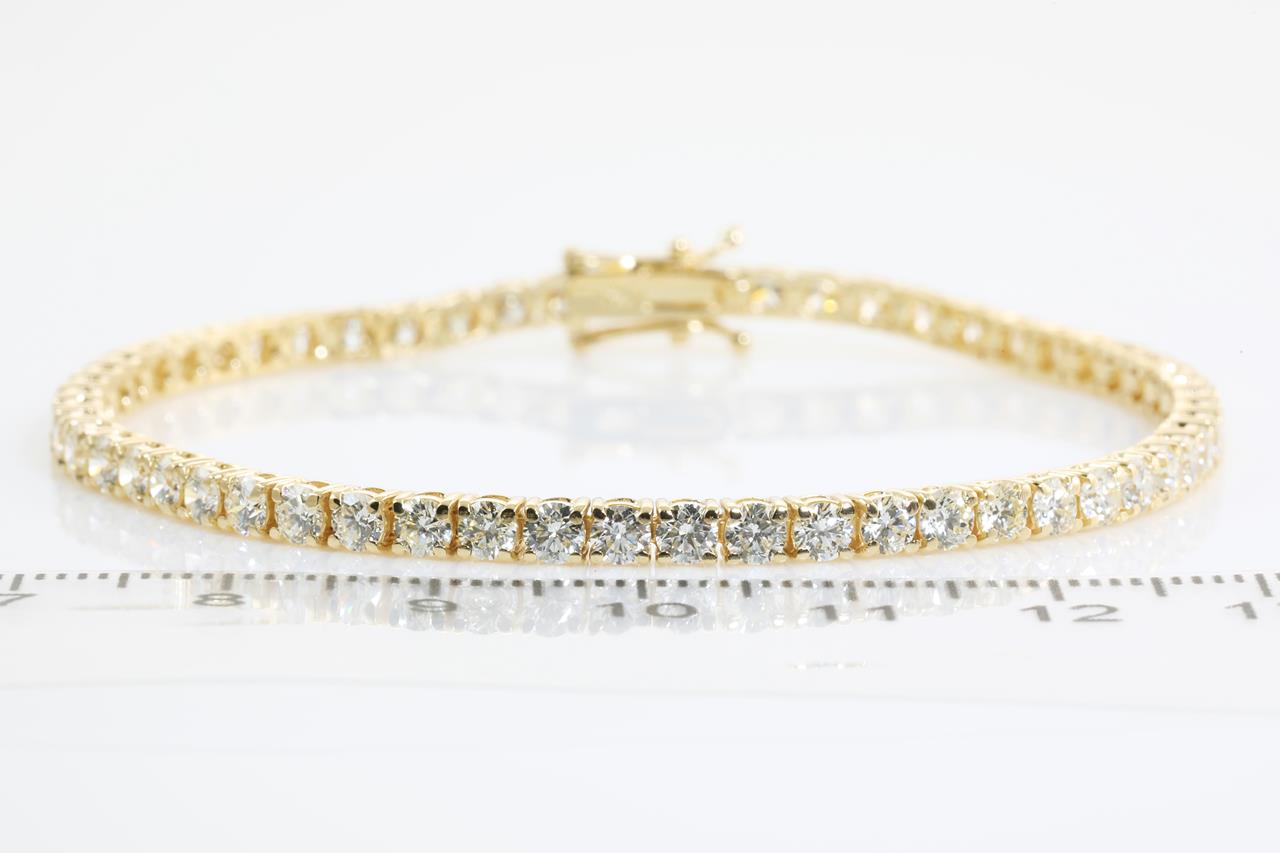 Diamond tennis bracelet with 57 round Diamonds totalling 5.92cts (Estimated grading: I-J SI). 18ct yellow gold. Length: 18cm Weight: 10.1g With certificate #414122. (New)
