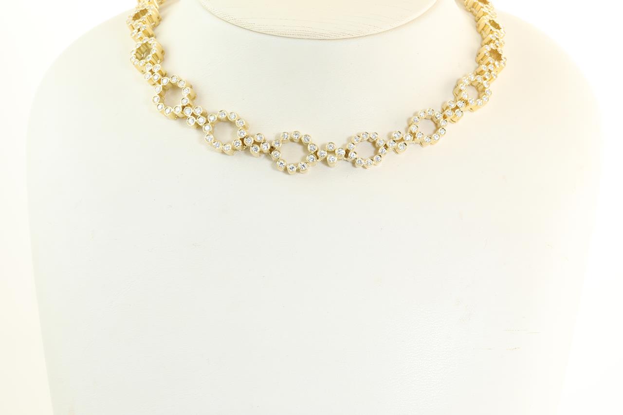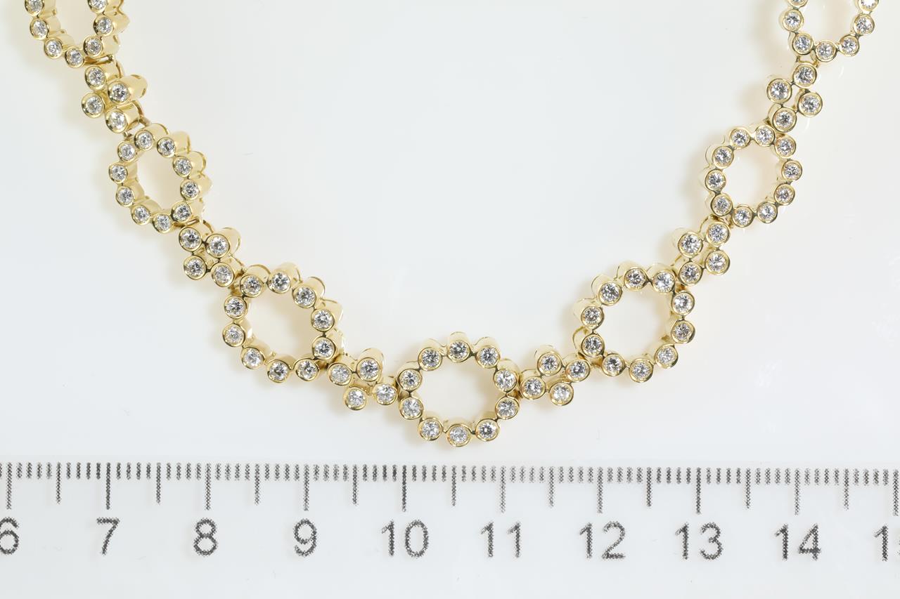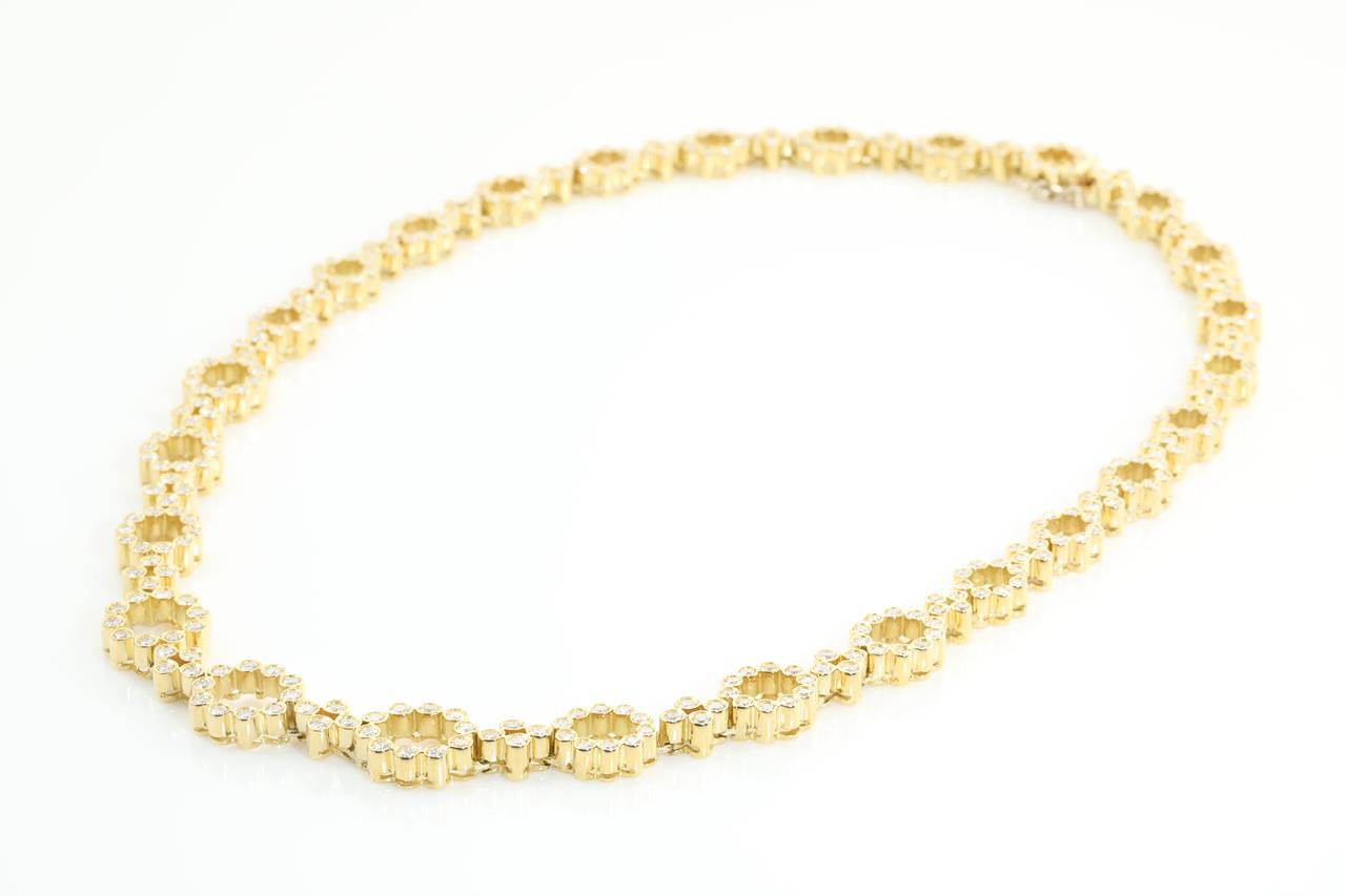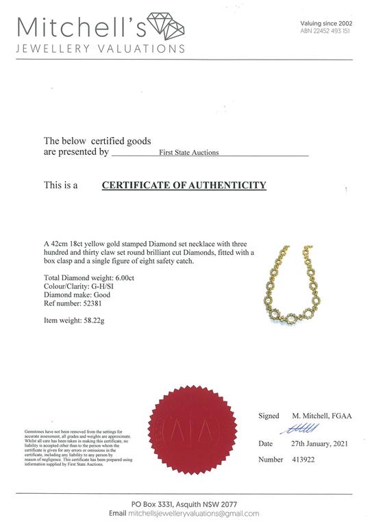 Diamond necklace with round Diamonds totalling 6.00cts (Estimated grading: G-H SI). 18ct yellow gold. Length: 42cm. Weight: 58.2g. With certificate #413922. (Pre-owned)