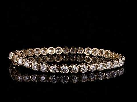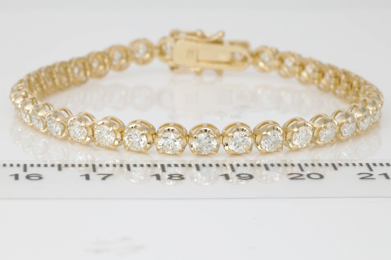Diamond tennis bracelet with 37 round Diamonds totalling 6.05cts (Estimated grading: J VS). 18ct yellow gold. Length: 18cm. Weight: 12.2g. With certificate #414867. (New)