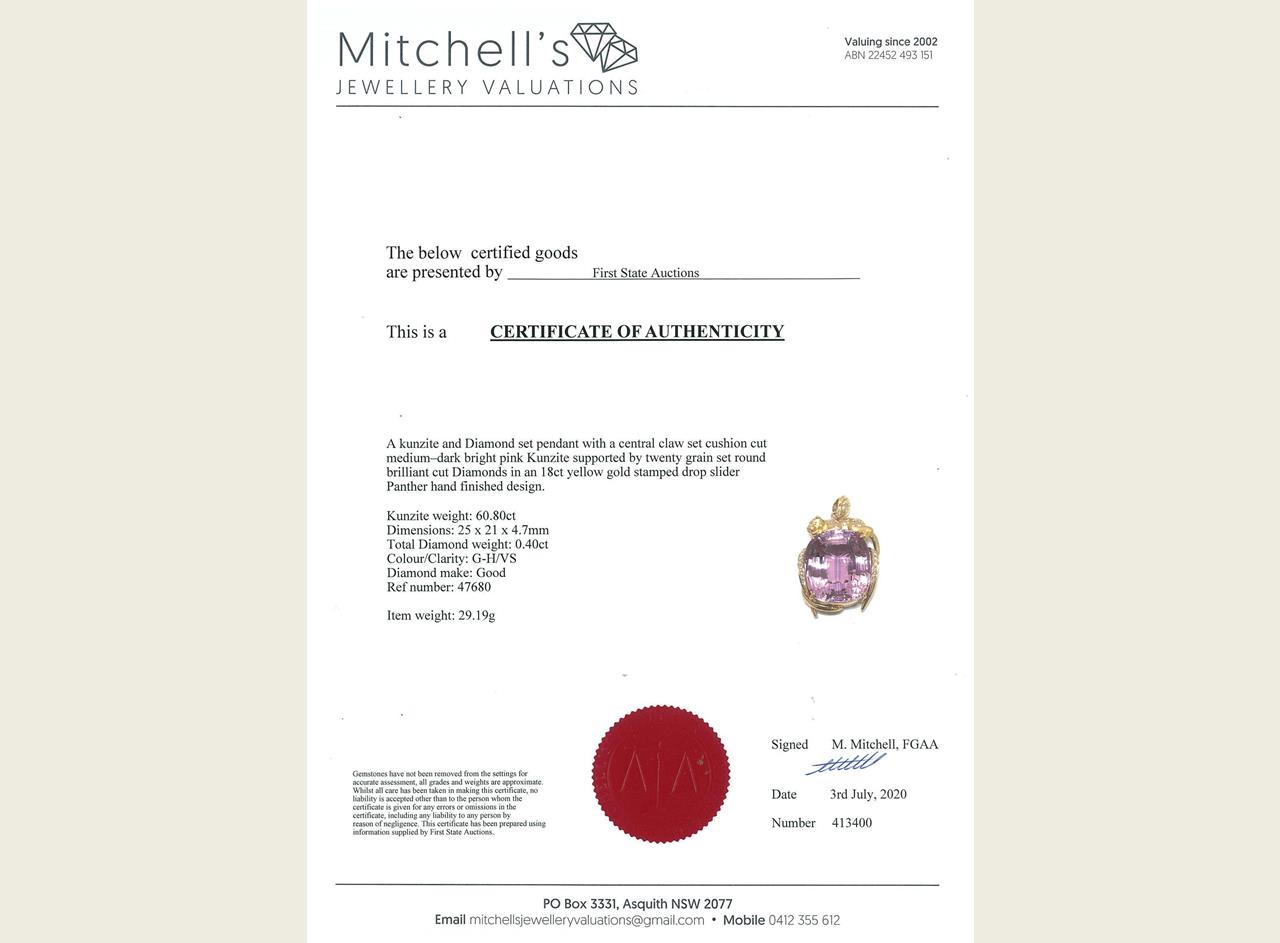 60.80ct Kunzite and Diamond Pendant | First State Auctions