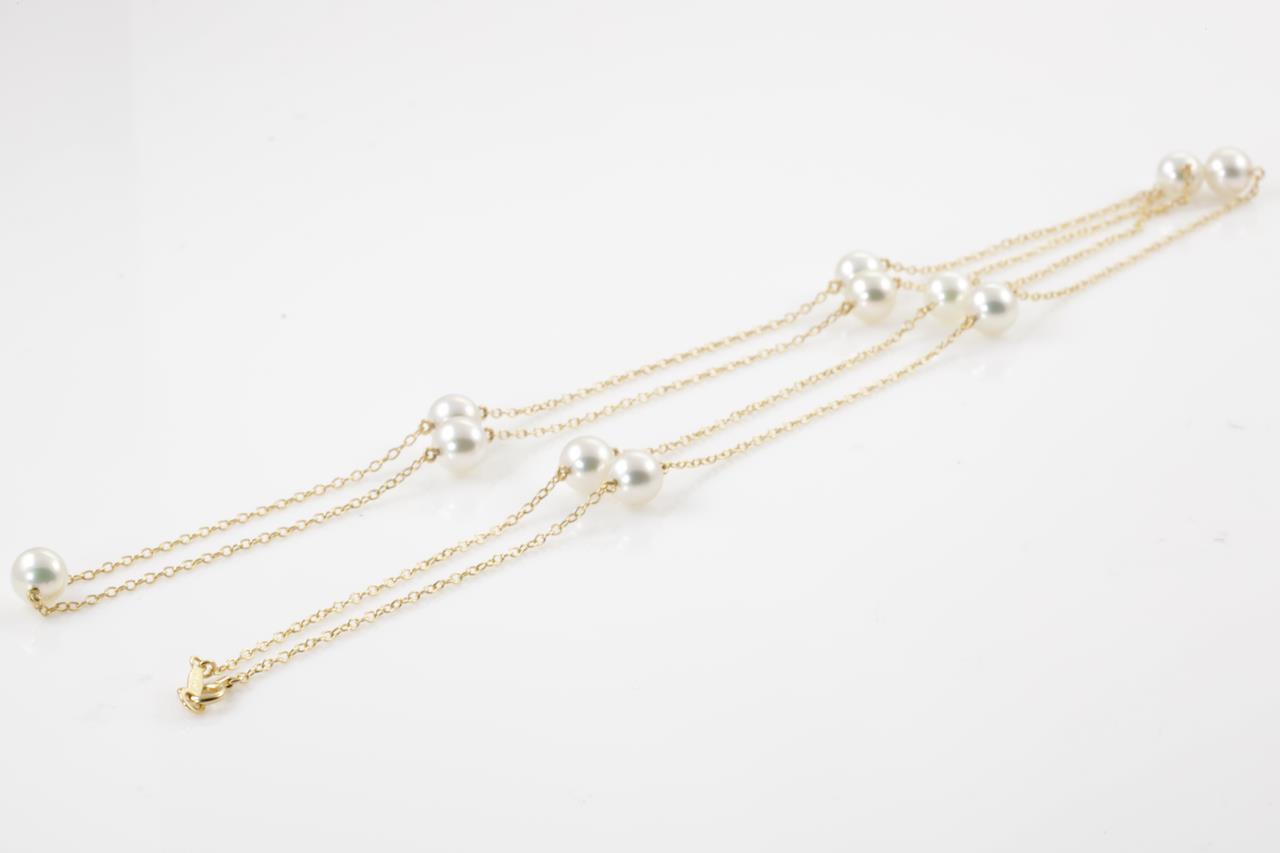 Mikimoto Pearl necklace with 11 Akoya Pearls of 6.0mm. 18ct yellow gold. Length: 78cm. Weight: 7.6g (Pre-owned)