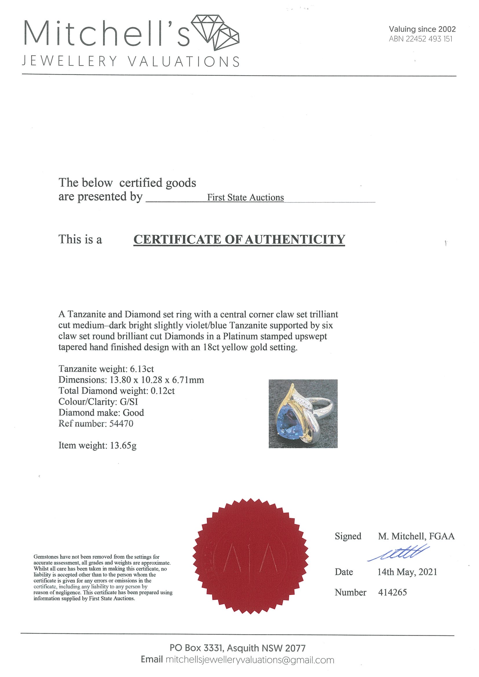 6.13ct Tanzanite and Diamond Ring | First State Auctions