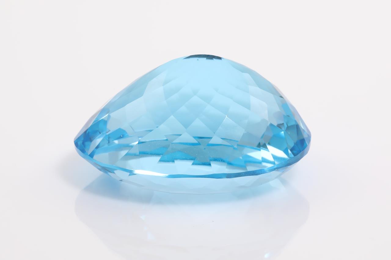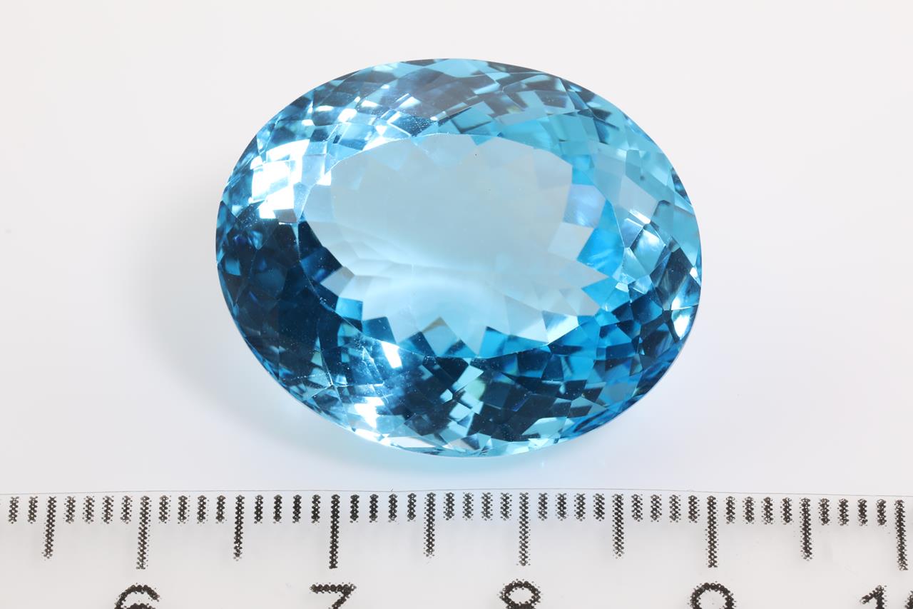A Loose oval Blue Topaz of 61.40ct. Size: 26.0 x 21.5 x 14.0mm. (New)