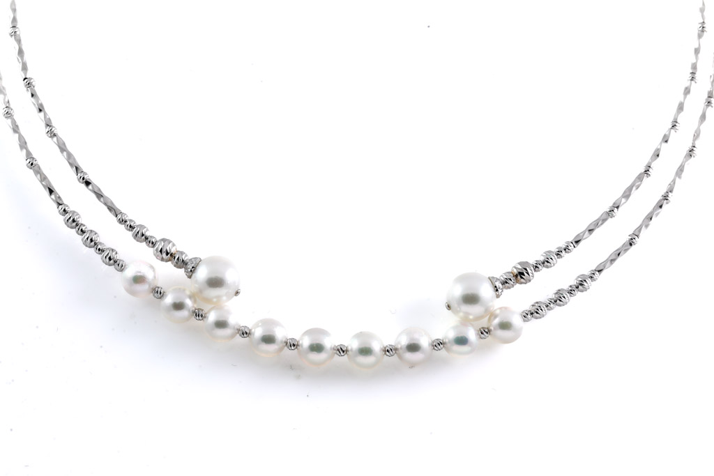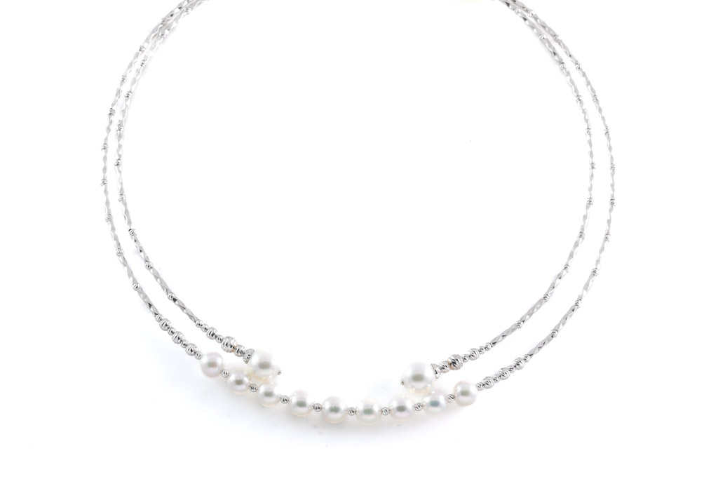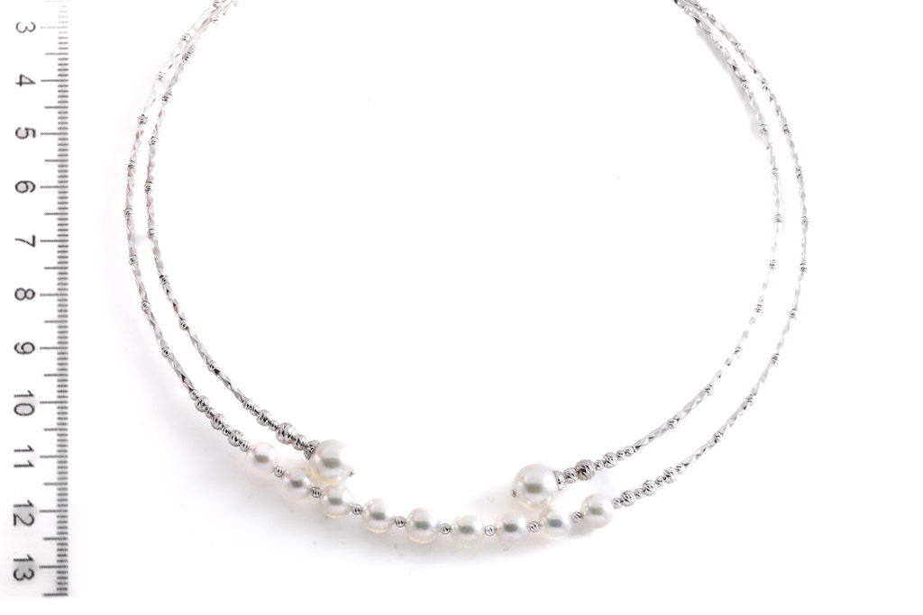Pearl flexi necklace with 11 Akoya Pearls of 6.1mm - 8.3mm. 18ct white gold. Circumference: approximately 71cm. Weight: 12.9g. (Pre-owned)