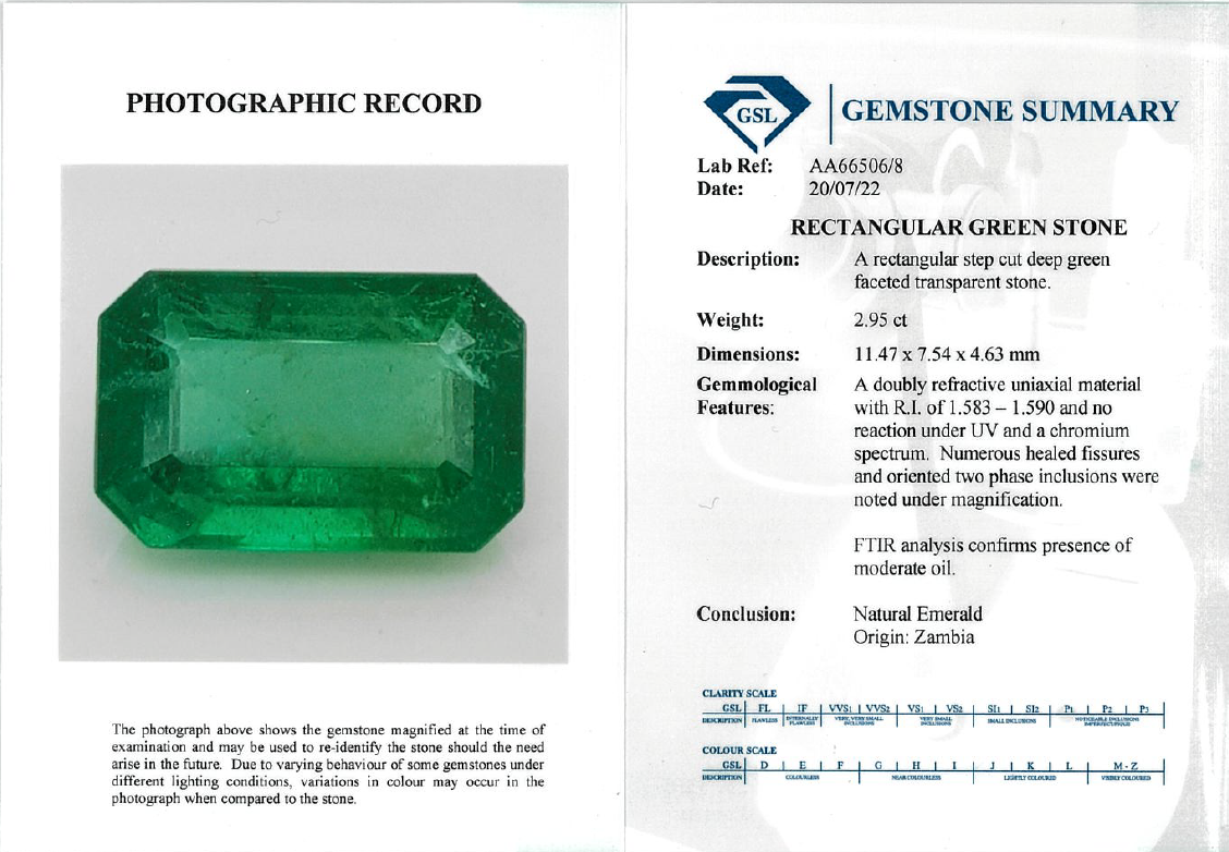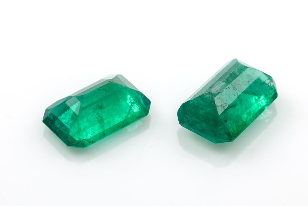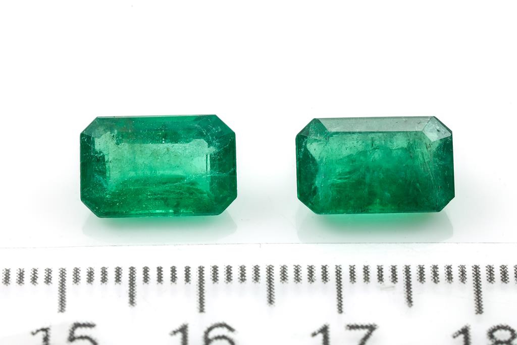A loose pair of emerald cut Emeralds totalling 6.52cts (both with GSL summary reports #AA66506/7, AA66506/8). (As new)