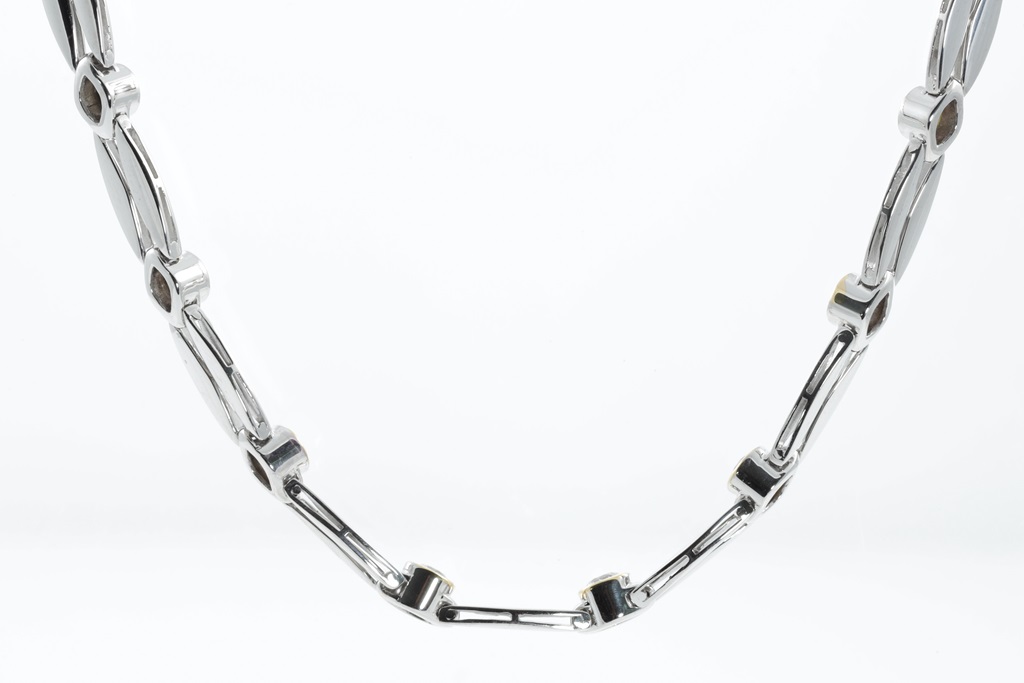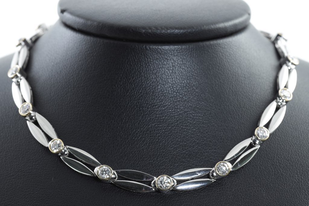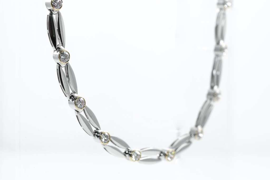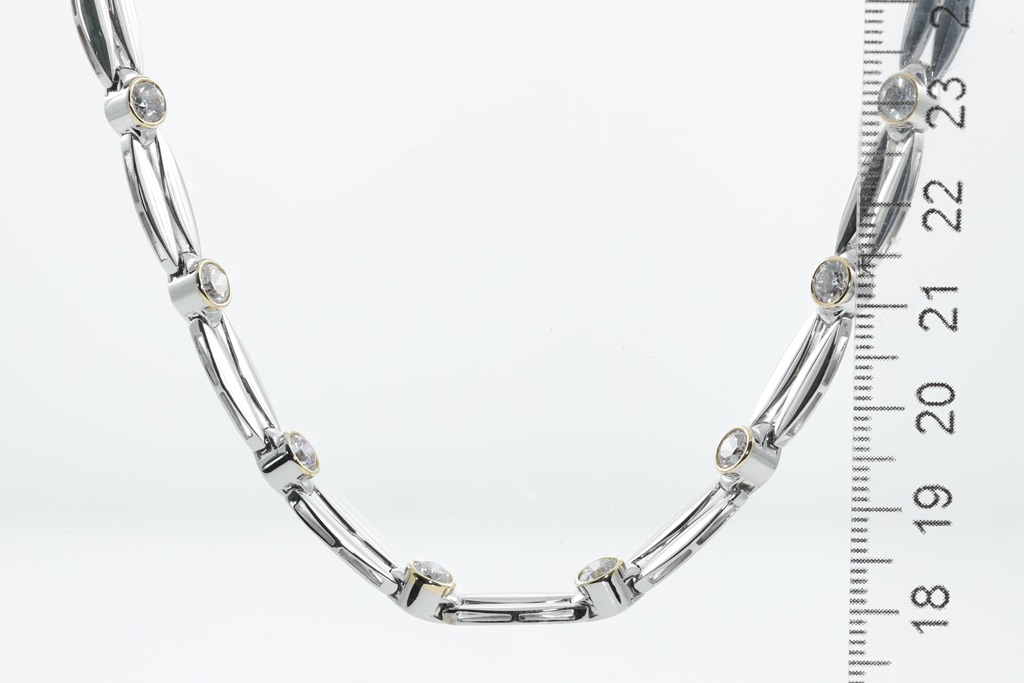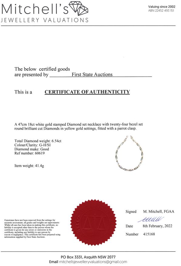Diamond necklace with round Diamonds of 6.54cts (Estimated grading: G-H SI). 18ct white and yellow gold. Length: 47cm. Weight: 41.4g. With Certificate #415168. (Pre-owned)