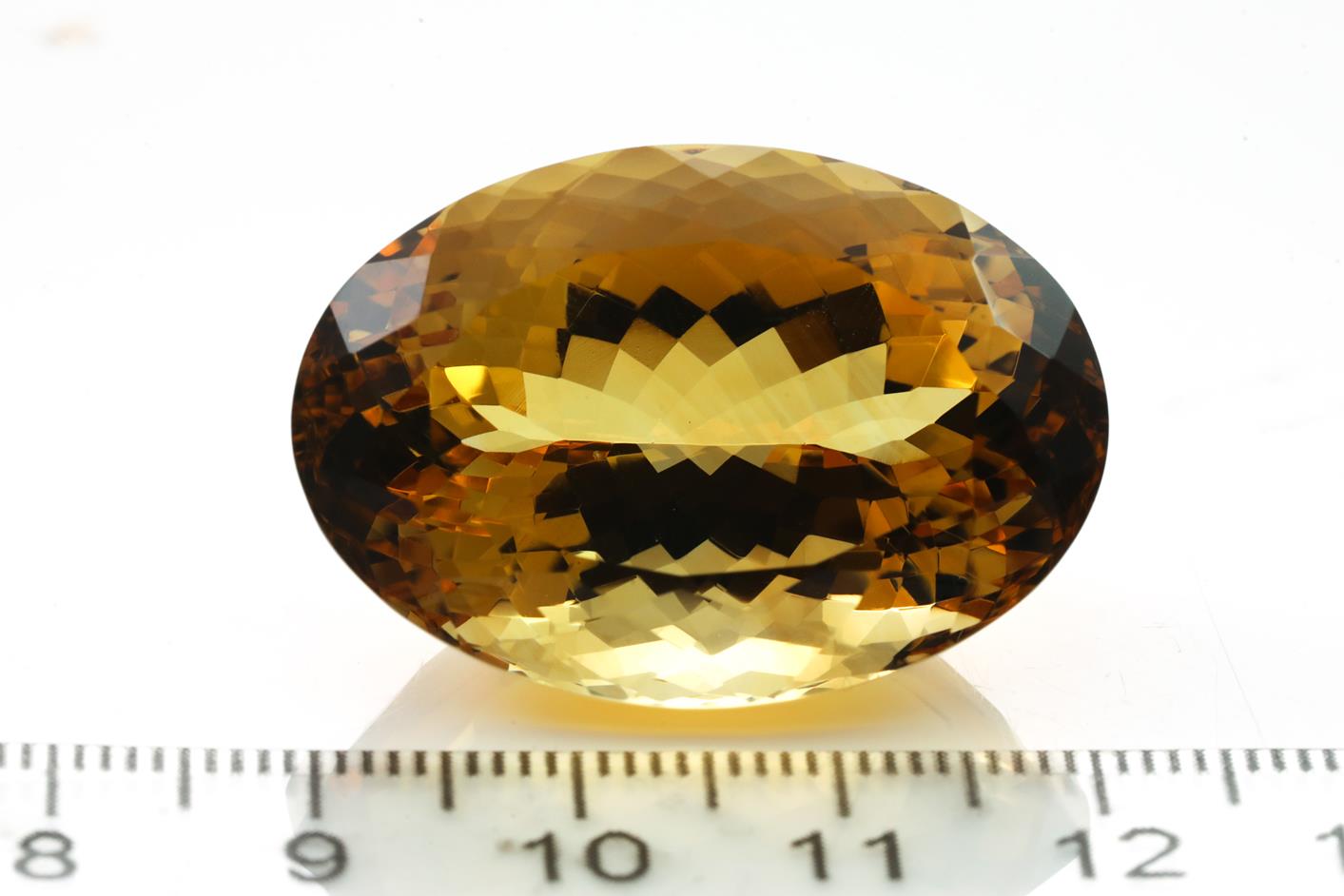 A loose oval shape Citrine of 67.41ct. Dimensions: 32mm x 21mm x 17.2mm. (As New)