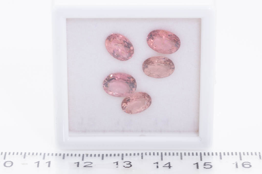 A loose parcel of 5 oval shape pink & brownish pink Tourmalines totalling 6.77cts. (As New)