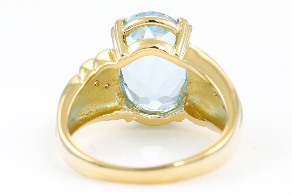 Topaz and Diamond Ring with an oval Topaz of 7.04ct and Diamonds totalling 0.13cts. 18ct yellow gold. Ring size: P1/2. Weight: 8.8g (Pre-owned)