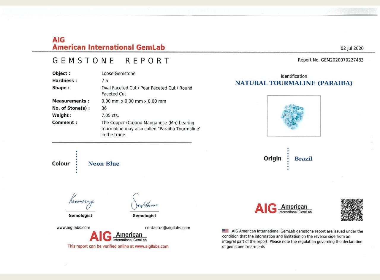 A loose parcel of mixed shape Paraiba Tourmalines totalling 7.05cts (with AIG report #GEM2020070227483). (New)