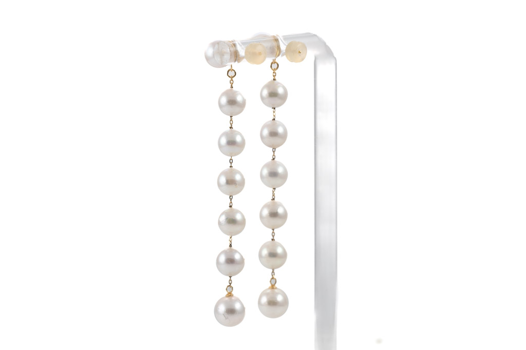 Pearl detachable drop earrings with 14 Akoya Pearls of 7.00mm - 7.9mm. 18ct yellow gold. Weight: 8.8g. (Pre-owned)