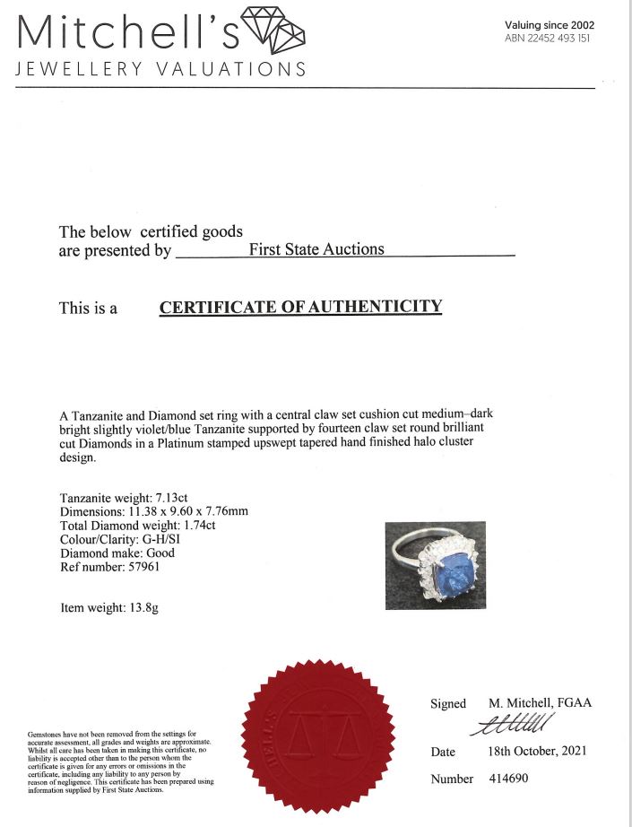 7.13ct Tanzanite and Diamond Ring | First State Auctions