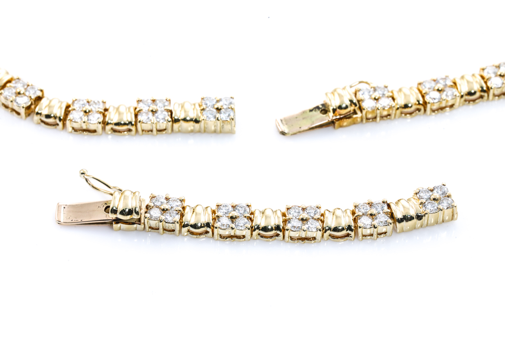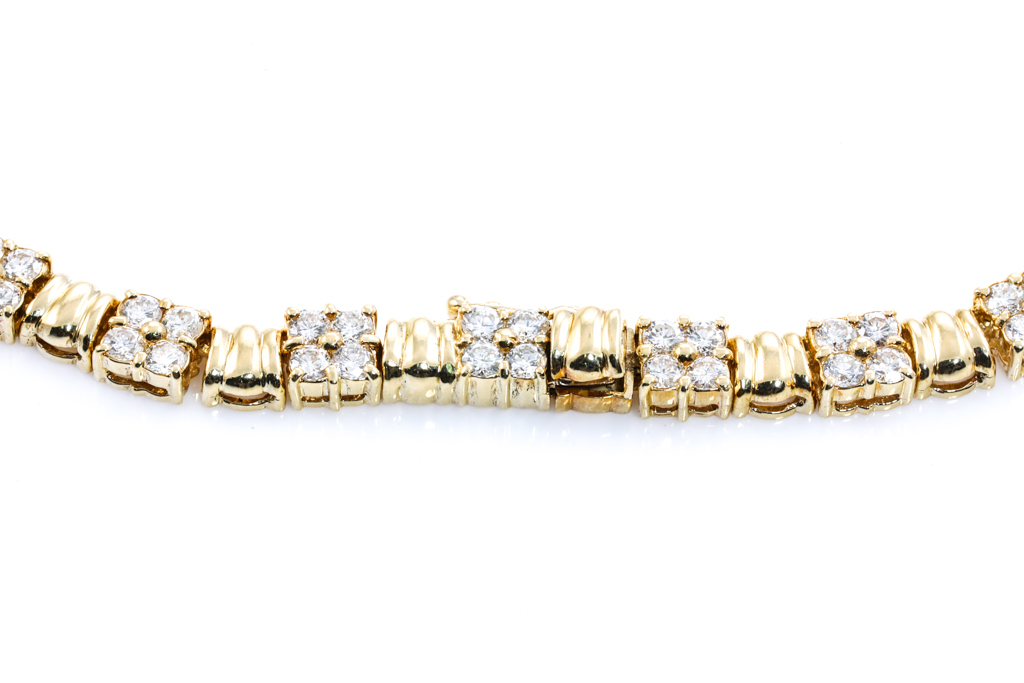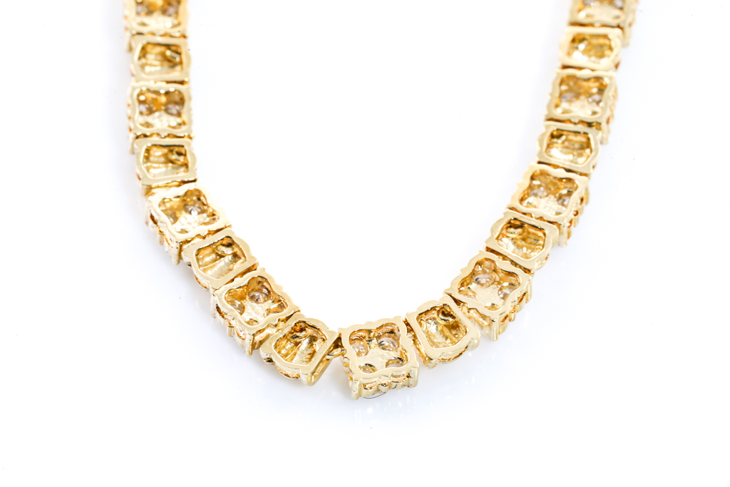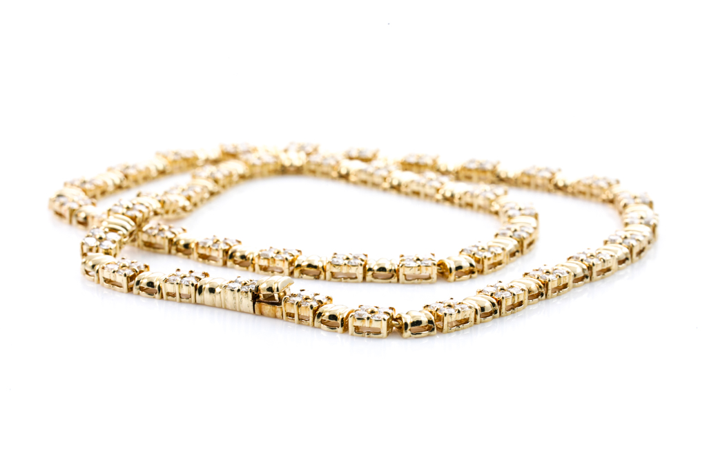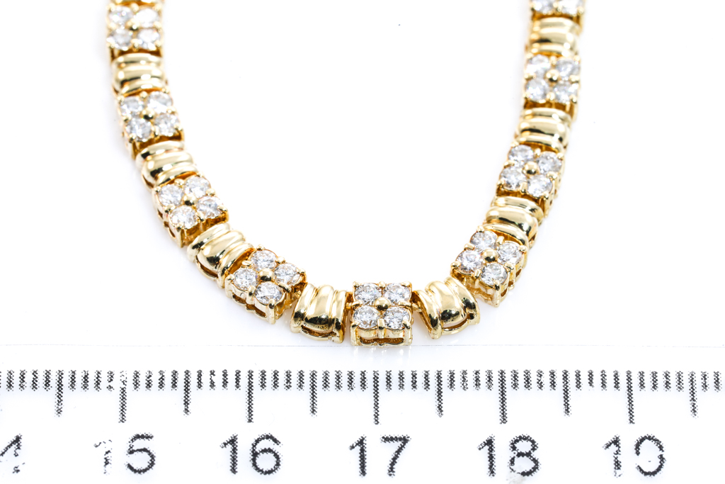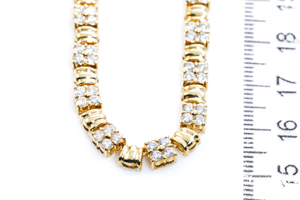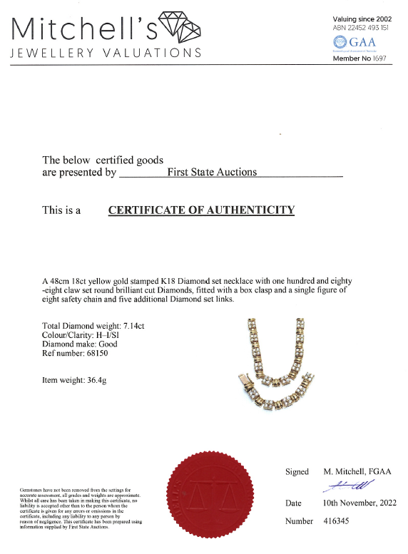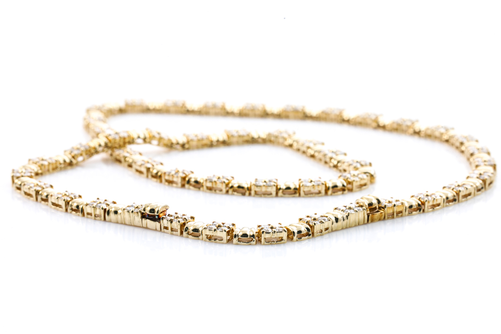 Diamond necklace with round Diamonds totalling 7.14cts (Estimated grading:H-I SI). 18ct yellow gold with adjustable maximum length of 48cm including 5 additional extension links. Weight: 36.4g. With Certificate #416345. (Pre-owned)