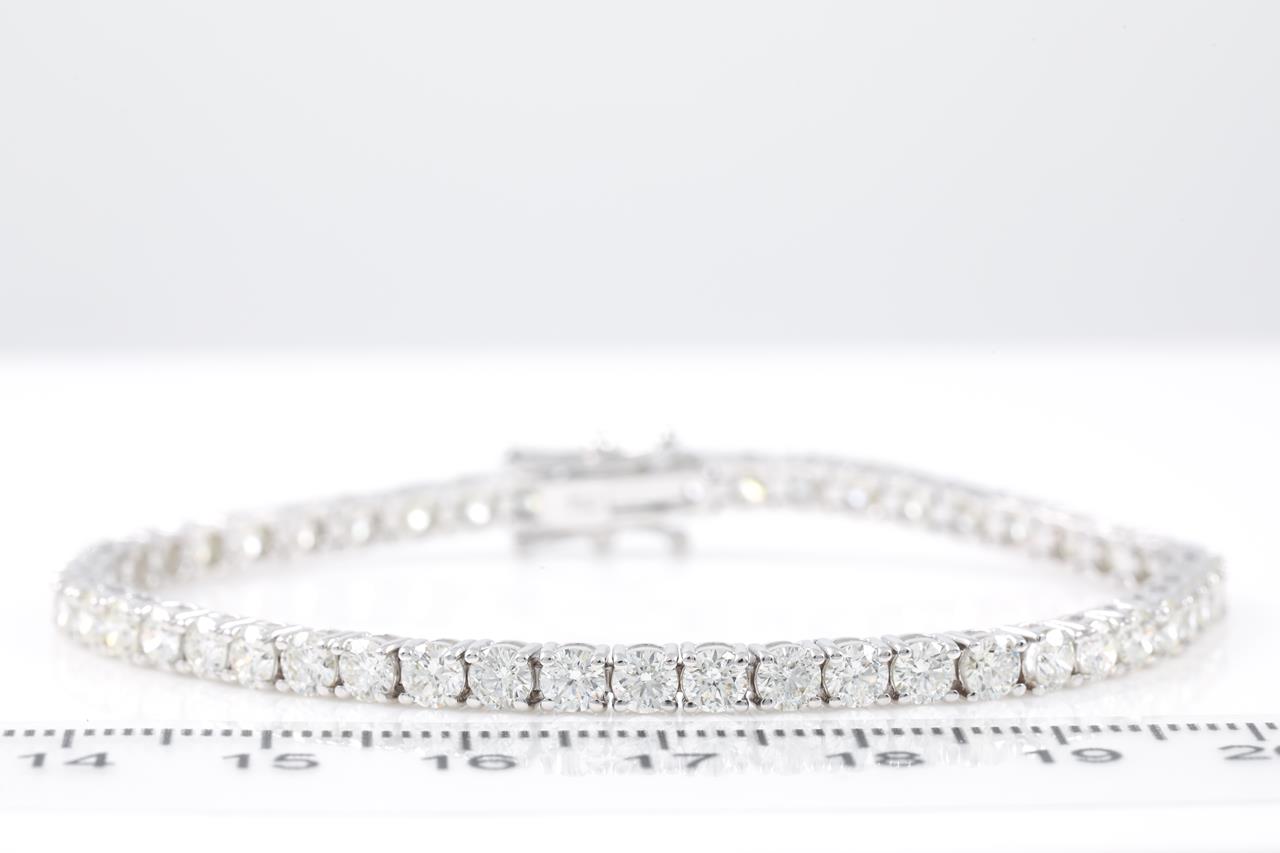 Diamond tennis bracelet with 49 round Diamonds totalling 7.19cts (Estimated grading: I-J VS). 18ct white gold. Length: 18cm. Weight: 11.5g. With certificate #414966. (New)