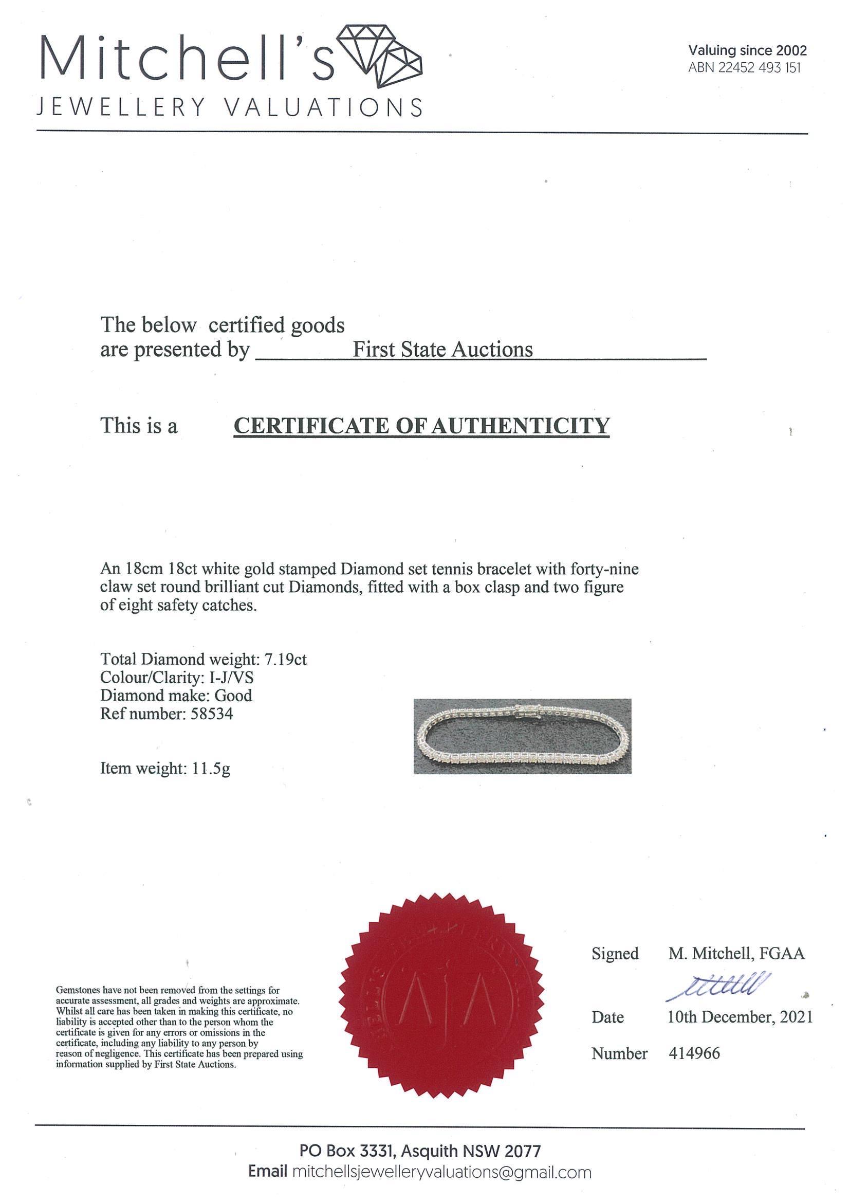 7.19ct Diamond Tennis Bracelet | First State Auctions