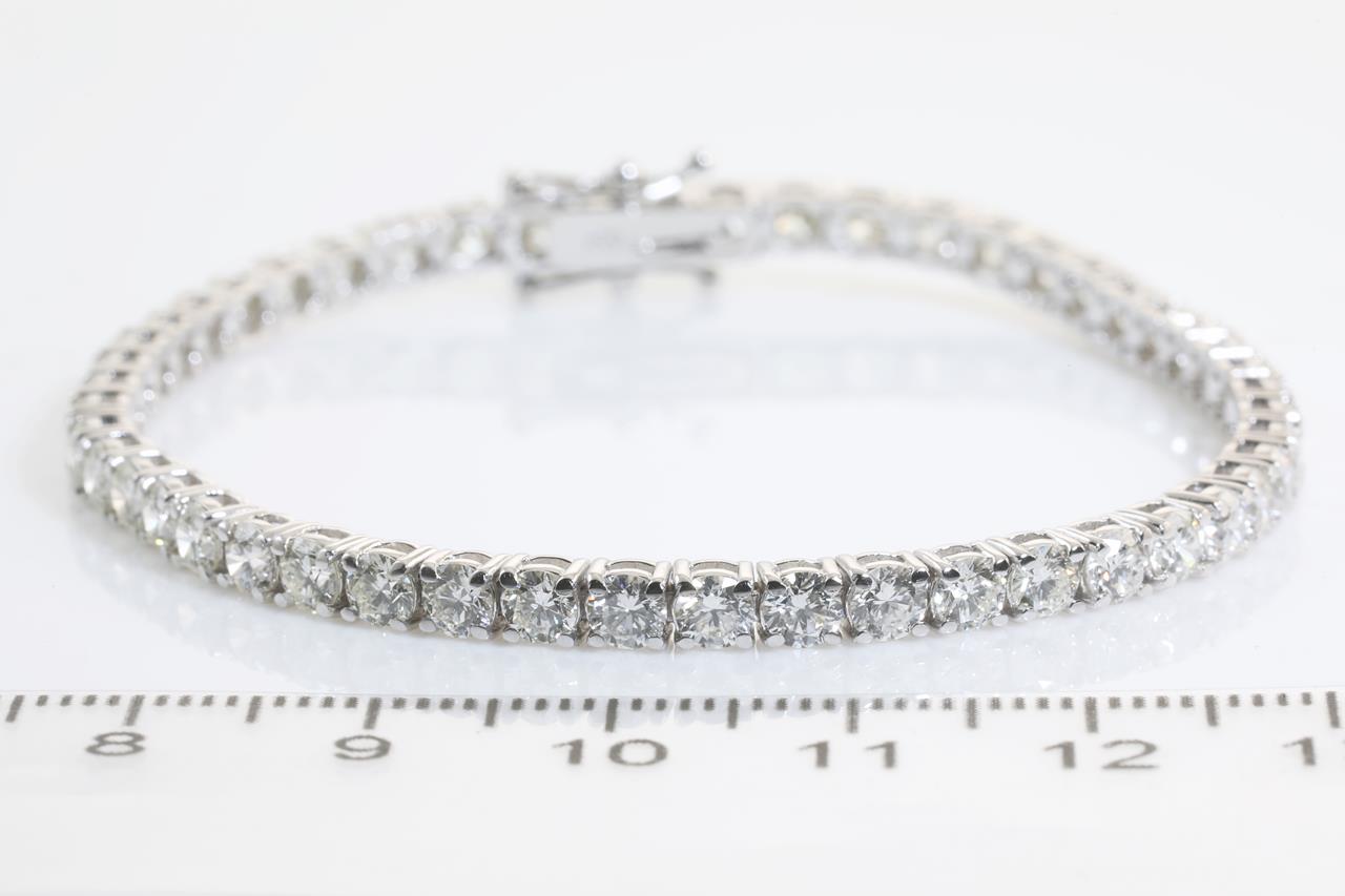 Diamond tennis bracelet with 49 round Diamonds totalling 7.21cts (Estimated grading: J-K SI). 18ct white gold. Length: 18cm. Weight: 11.6g With certificate #4402. (New)