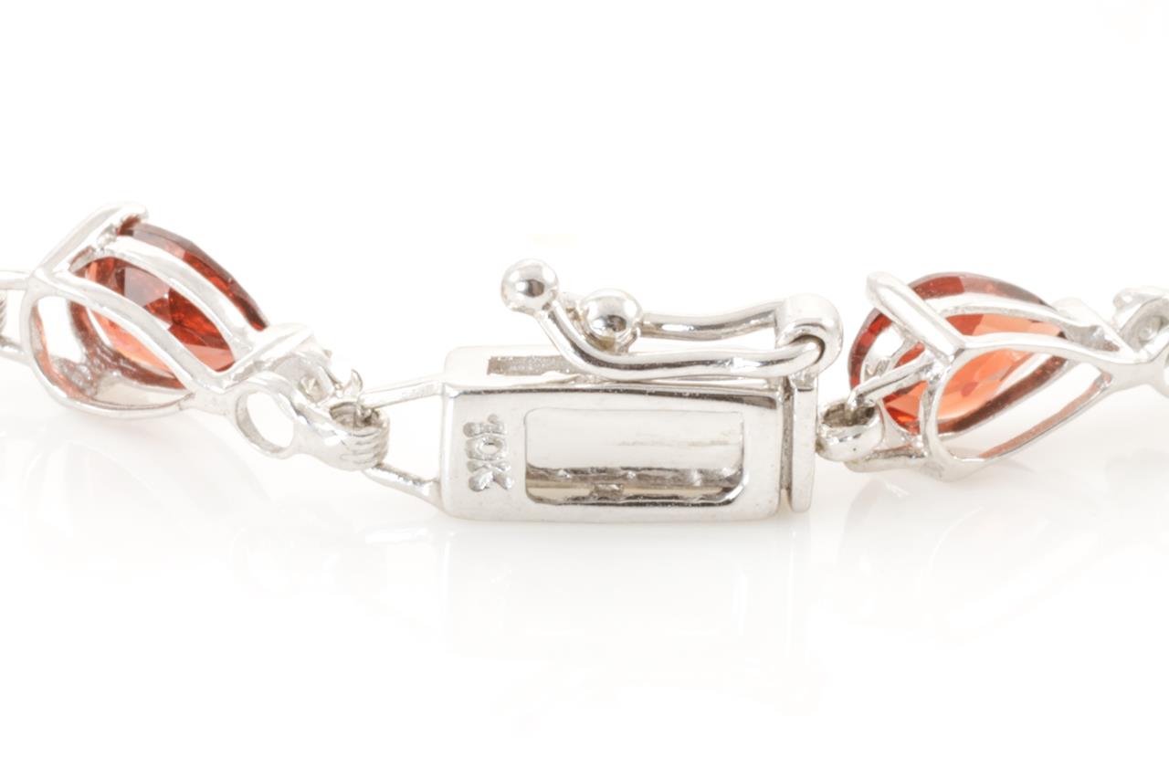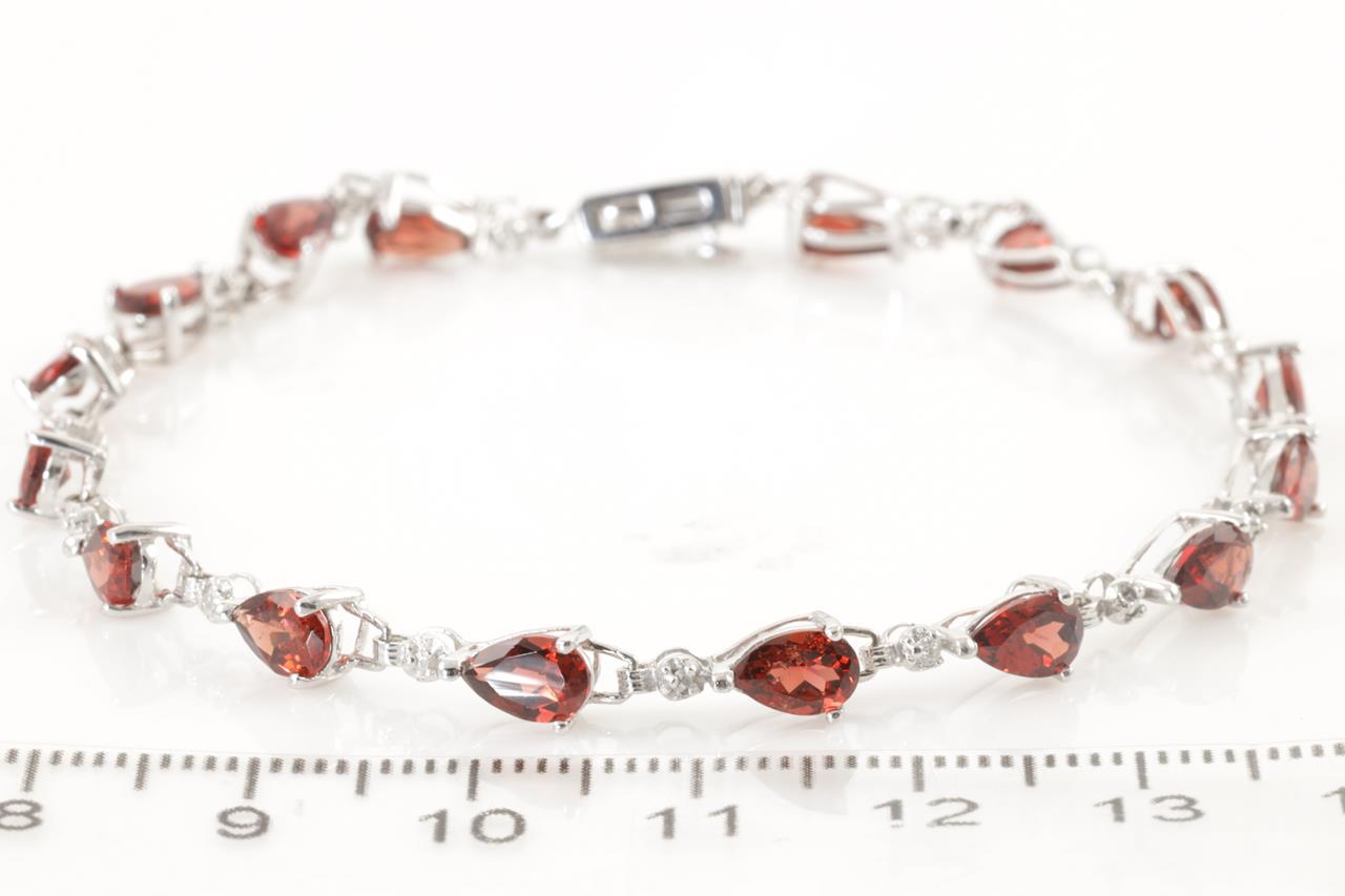 Garnet and Diamond Bracelet with sixteen pear-shaped Garnets totalling approximately 7.52cts and six round Diamonds totalling appoximately 0.03cts. 10ct white gold. Length 19.5cm. Weight 5.5g. (Pre-owned)
