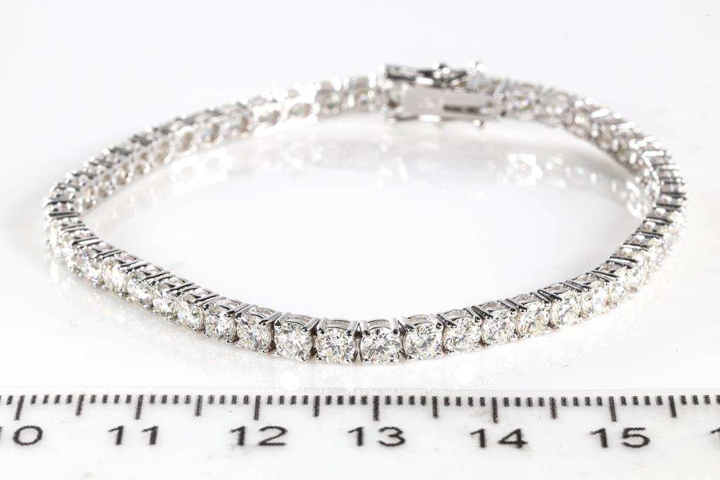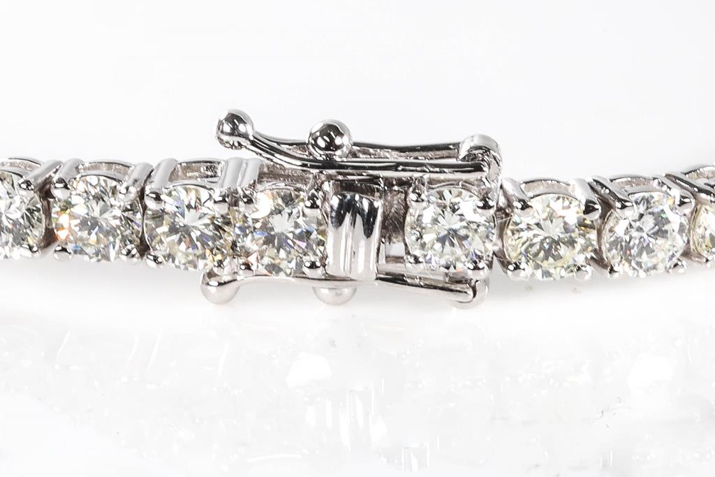 Diamond tennis bracelet with 50 round Diamonds totalling 7.58cts (Estimated grading: I-J SI). 18ct white gold. Length: 18cm. Weight: 11.8g. With certificate #415415. (New)