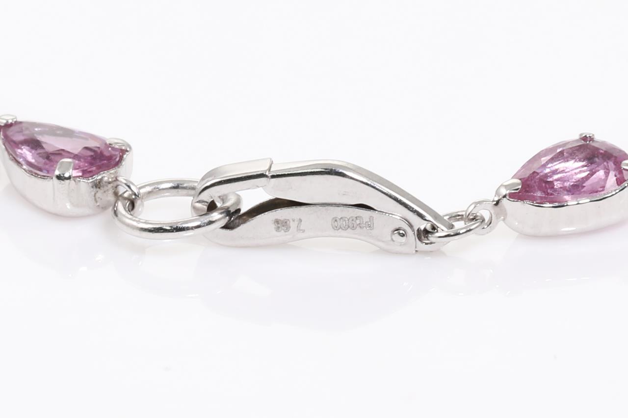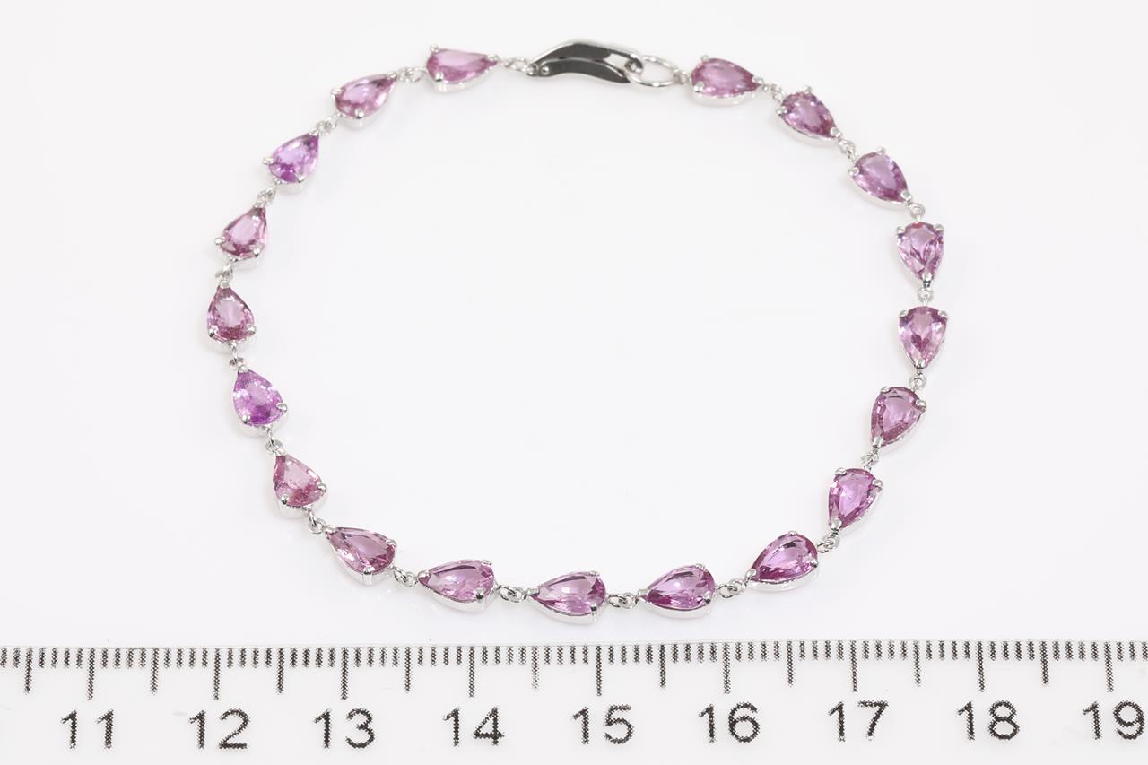 Sapphire Bracelet with pear shape purplish pink Sapphires totalling 7.68cts. Platinum. Length: 18cm. Weight: 4.5g (Pre-owned)