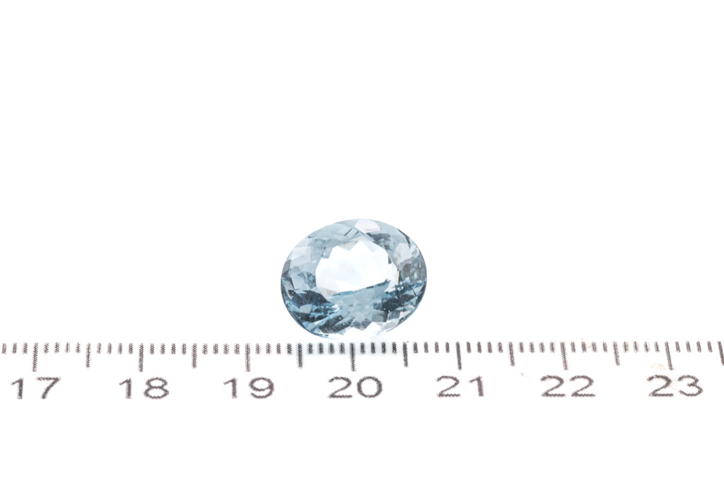 A loose oval shape aquamarine of 7.77ct. Dimension: 14.09mm x 12.03mm x 8.35mm. Weight: 1.5g. (Pre-owned)