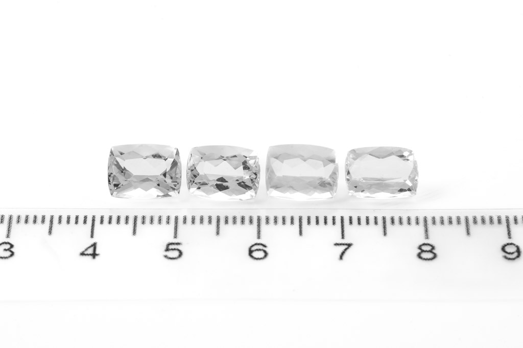 Loose parcel of 4 rectangular cushion cut Aquamarines totalling 7.89cts. Approximate Dimensions: 9.00 x 7.00 x 4.3-4.9mm in depth. (As New)