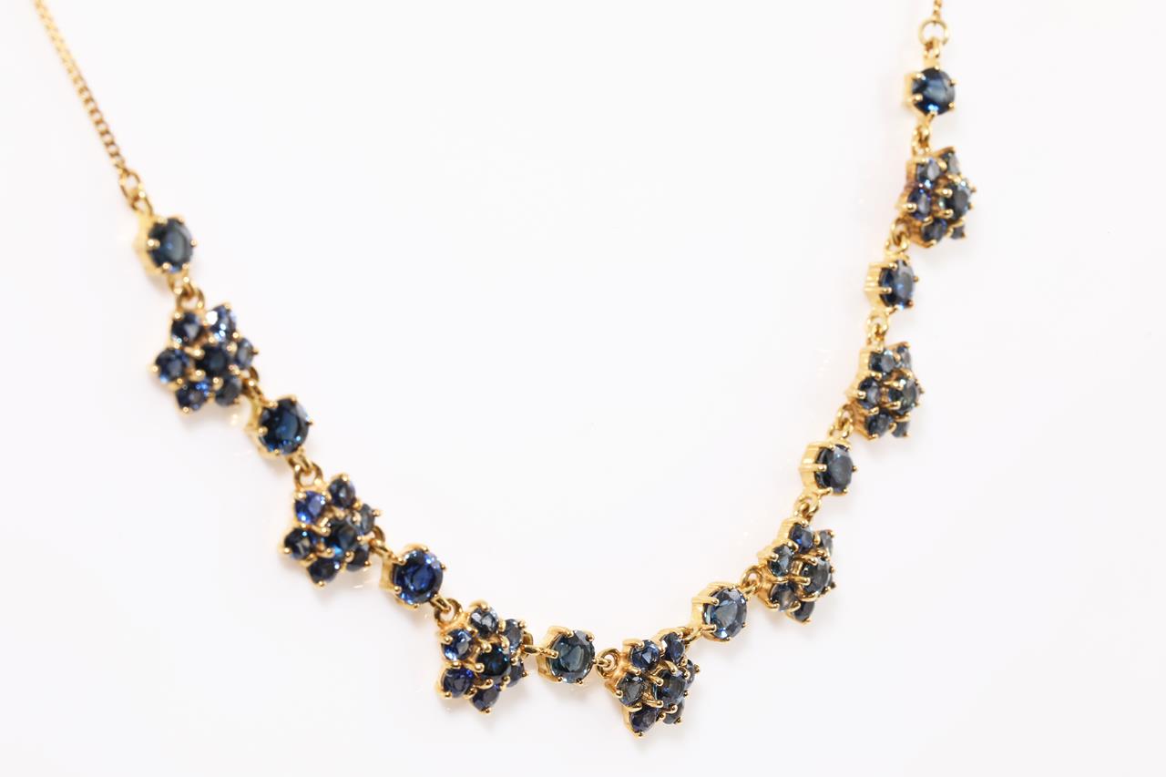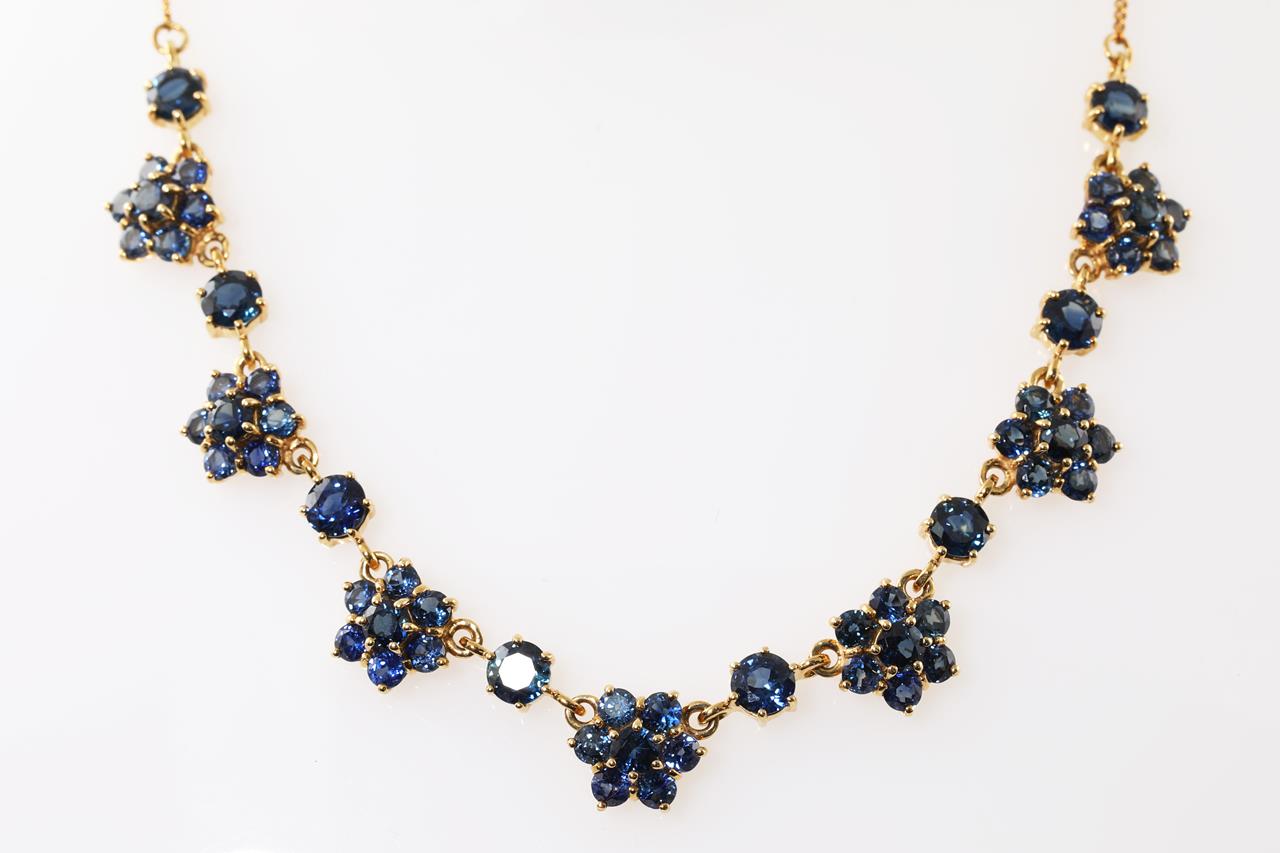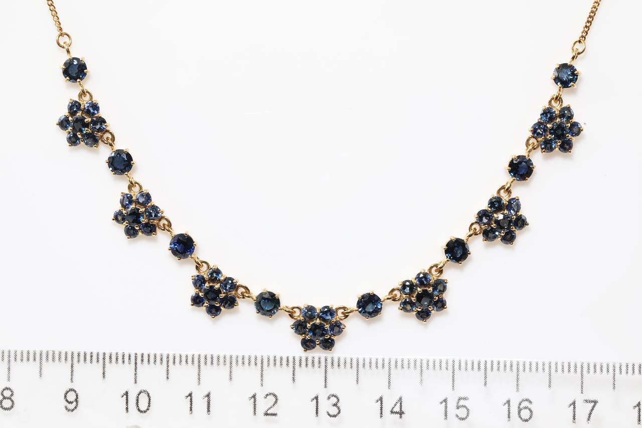 Sapphire necklace with round blue sapphires totalling 7.90cts. 18ct yellow gold. Adjustable max length: 40cm. Weight: 9.9g (Pre-owned)