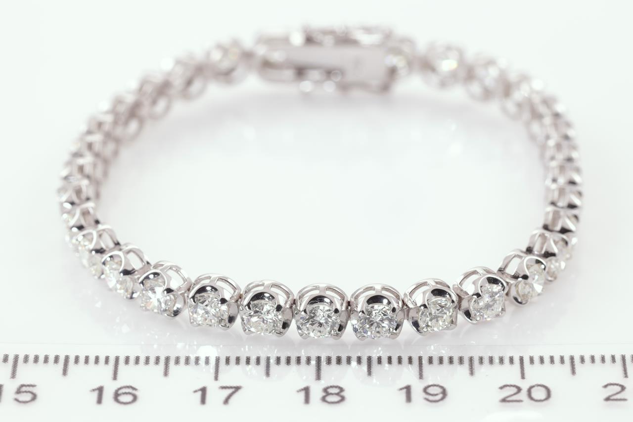 Diamond tennis bracelet with 32 round Diamonds totalling 8.10cts (Estimated grading: H SI). 18ct white gold. Length: 18cm. Weight: 14.1g. With certificate #415111. (New)
