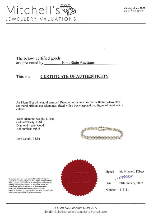 8.10ct Diamond Tennis Bracelet | First State Auctions