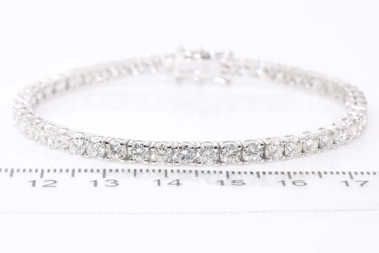 Diamond tennis bracelet with 48 round Diamonds totalling 8.33cts (Estimated grading: H-J SI). 18ct white gold. Length: 18cm. Weight: 12.7g. With certificate #414490. (New)