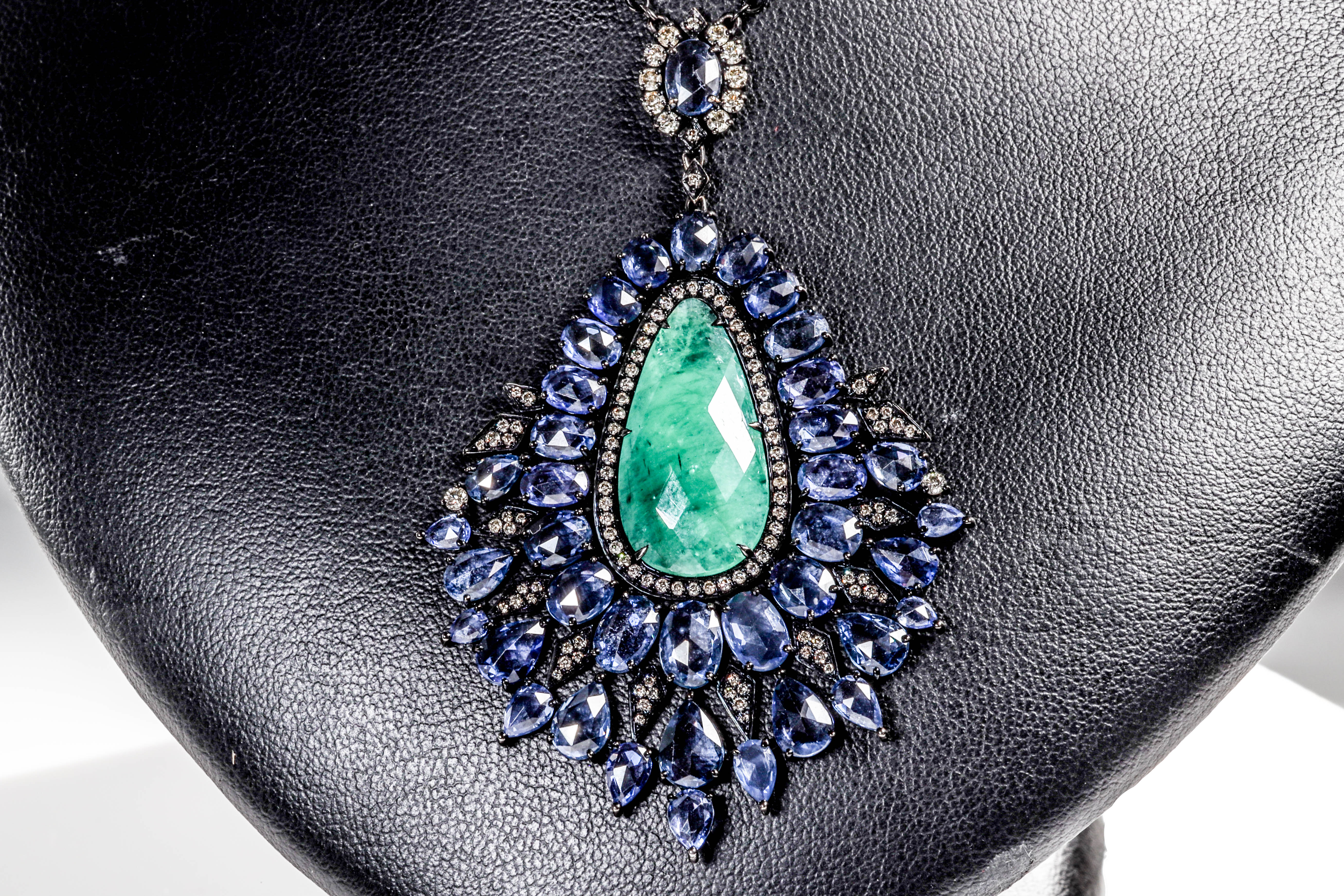 8.37ct Emerald, Sapphire and Diamond Necklace