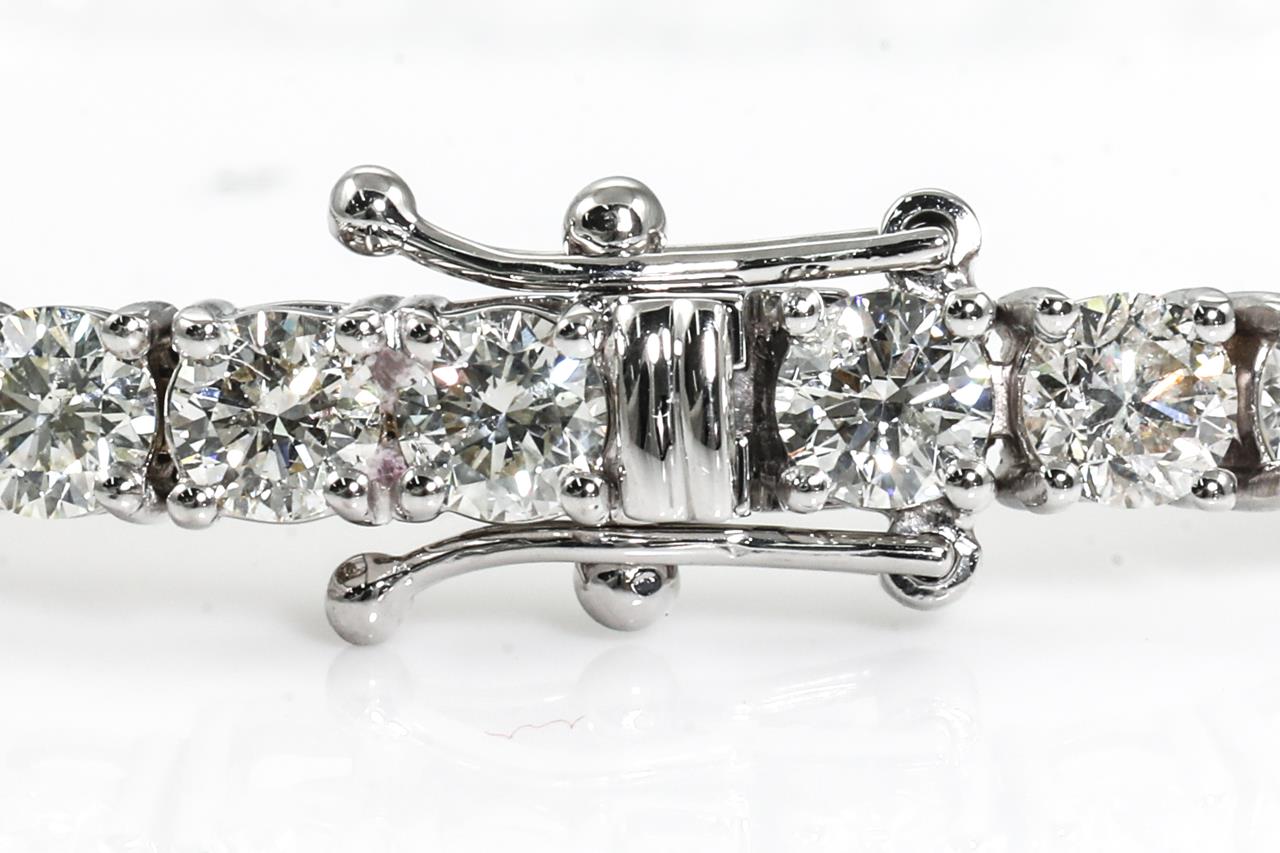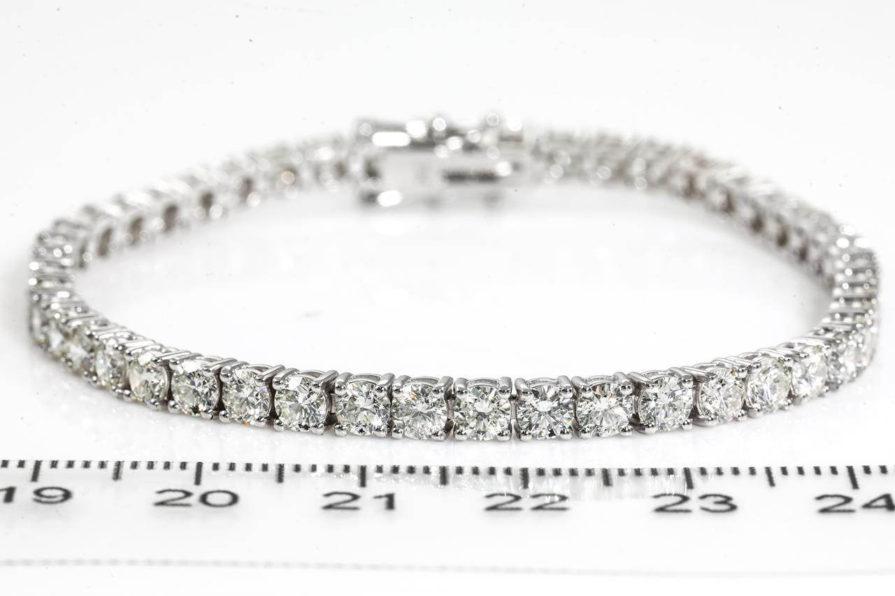 Diamond tennis bracelet with 48 round Diamonds totalling 8.38cts (Estimated grading: I-J SI). 18ct white gold. Length: 18cm. Weight: 12.8g. With certificate #415411. (New)