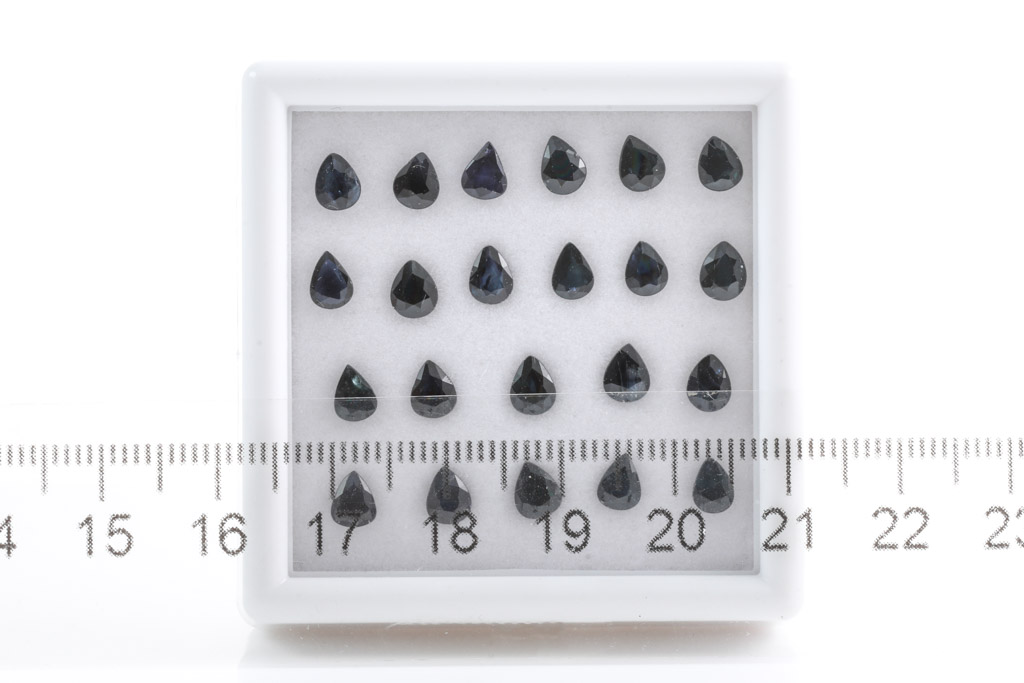 A loose parcel of approximately 22 pear shape Sapphire totalling 8.40cts. Measuring approximately 5 x 4mm. (As New)