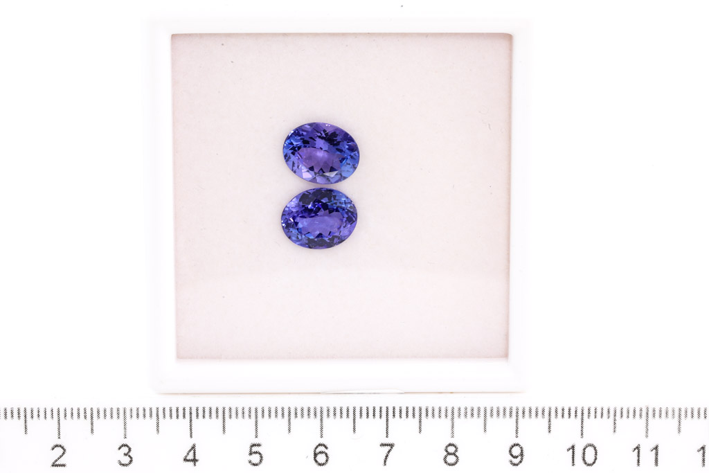 A pair of loose oval shape Tanzanite's totalling 8.50cts. Approx Dimensions: 11.5mm x 9.5mm x 5.80-5.30mm. (As New)