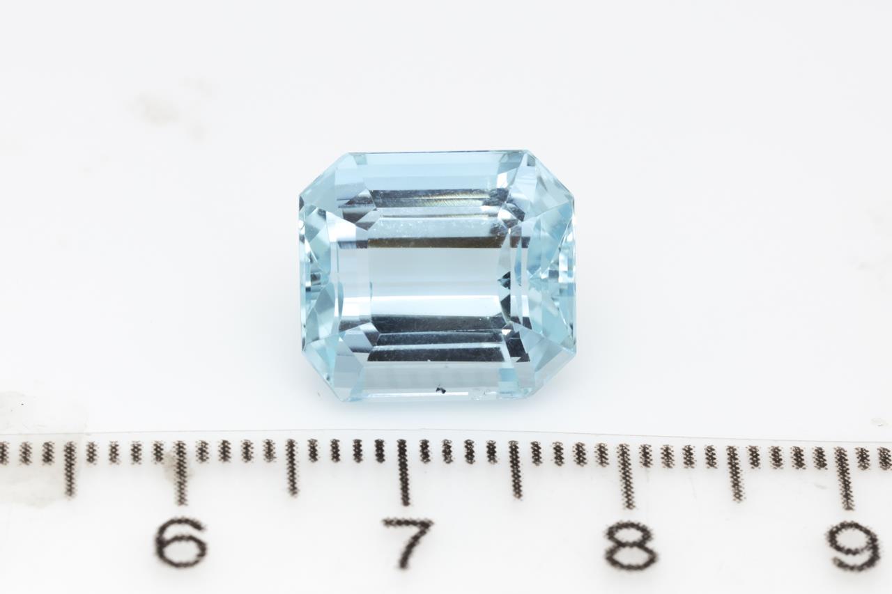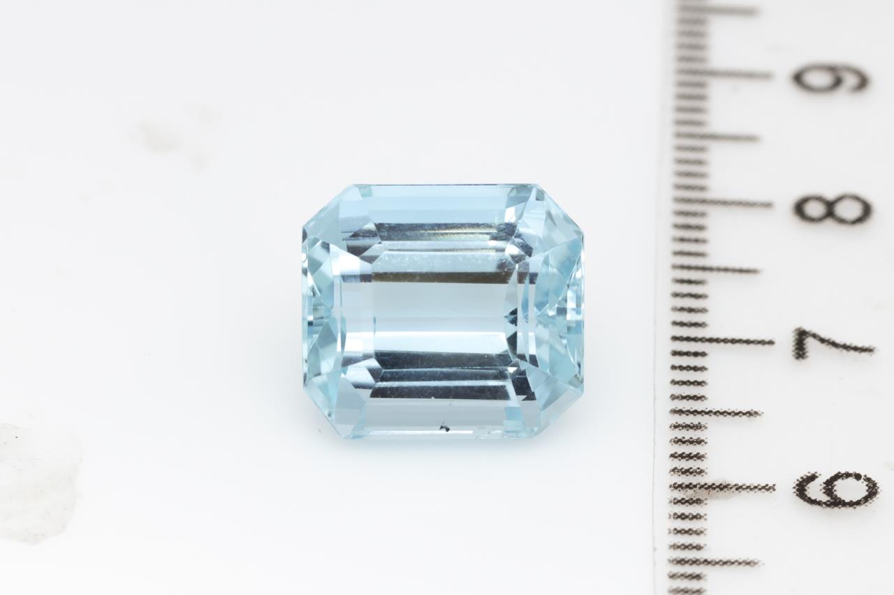 A loose emerald cut Aquamarine of 8.67ct. Size 12.6 x 11.4 x 8.3mm. (Pre-owned)