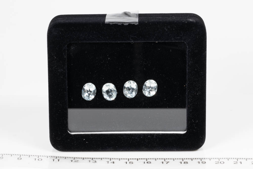 Loose parcel of 4 oval shape Aquamarines totalling 8.74cts. Approximate dimensions: 10.0 x 8.00 x 4.5-5.1mm in depth. (As New)