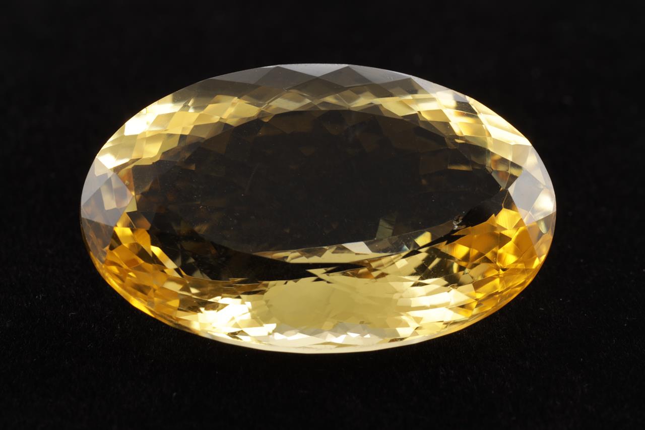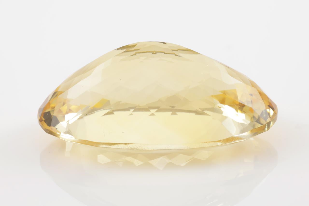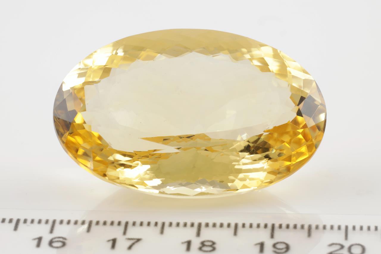 A Loose oval Citrine of 89.30ct. Approximate Size: 38.0 x 25.3 x 16.1mm. (New)