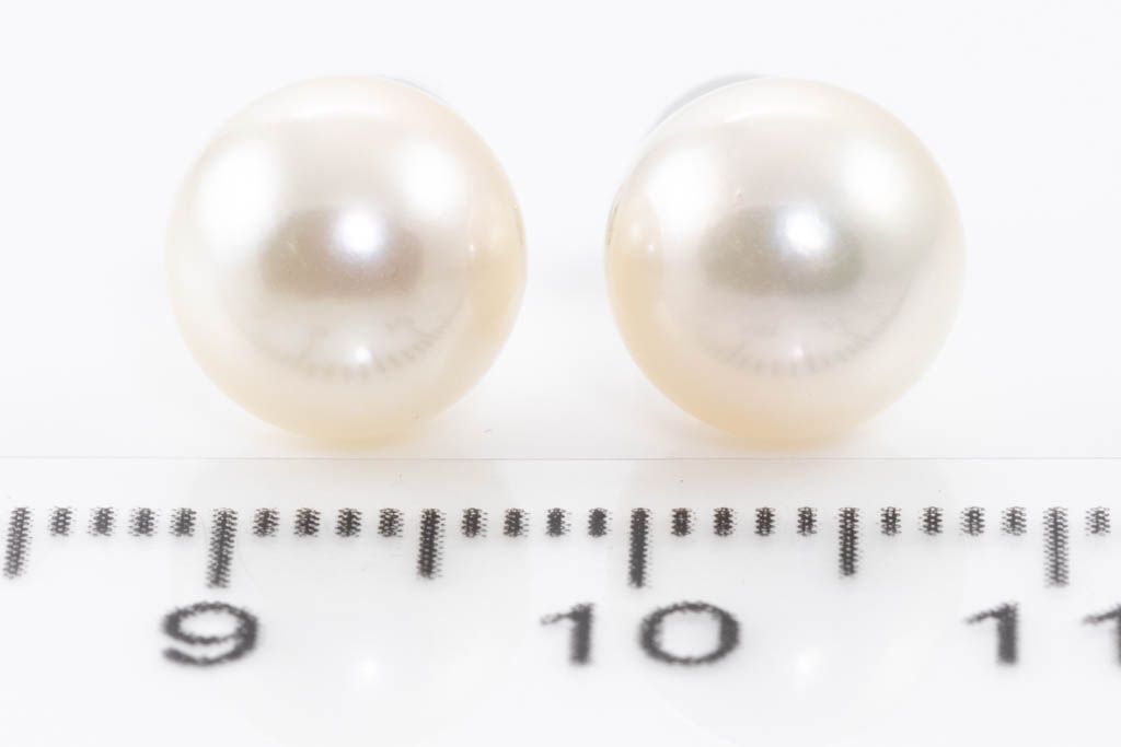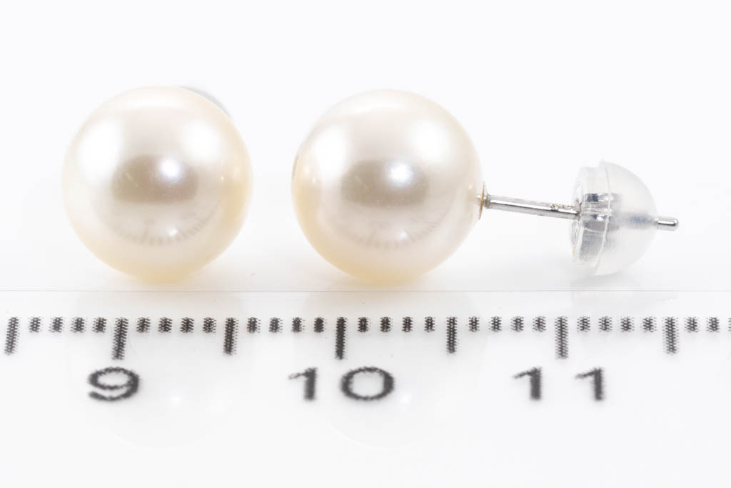 Pearl earrings with Akoya Pearls of 8.9mm. 14ct white gold with silicon & 14ct white gold backs. Weight: 2.2g. (Pre-owned)