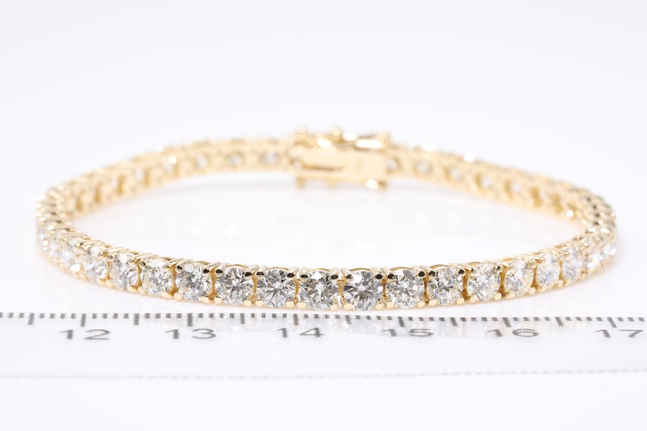 Diamond tennis bracelet with 45 round Diamonds totalling 9.01cts (Estimated grading: H-I SI). 18ct yellow gold. Length: 18cm. Weight: 13.3g. With certificate #414453. (New)