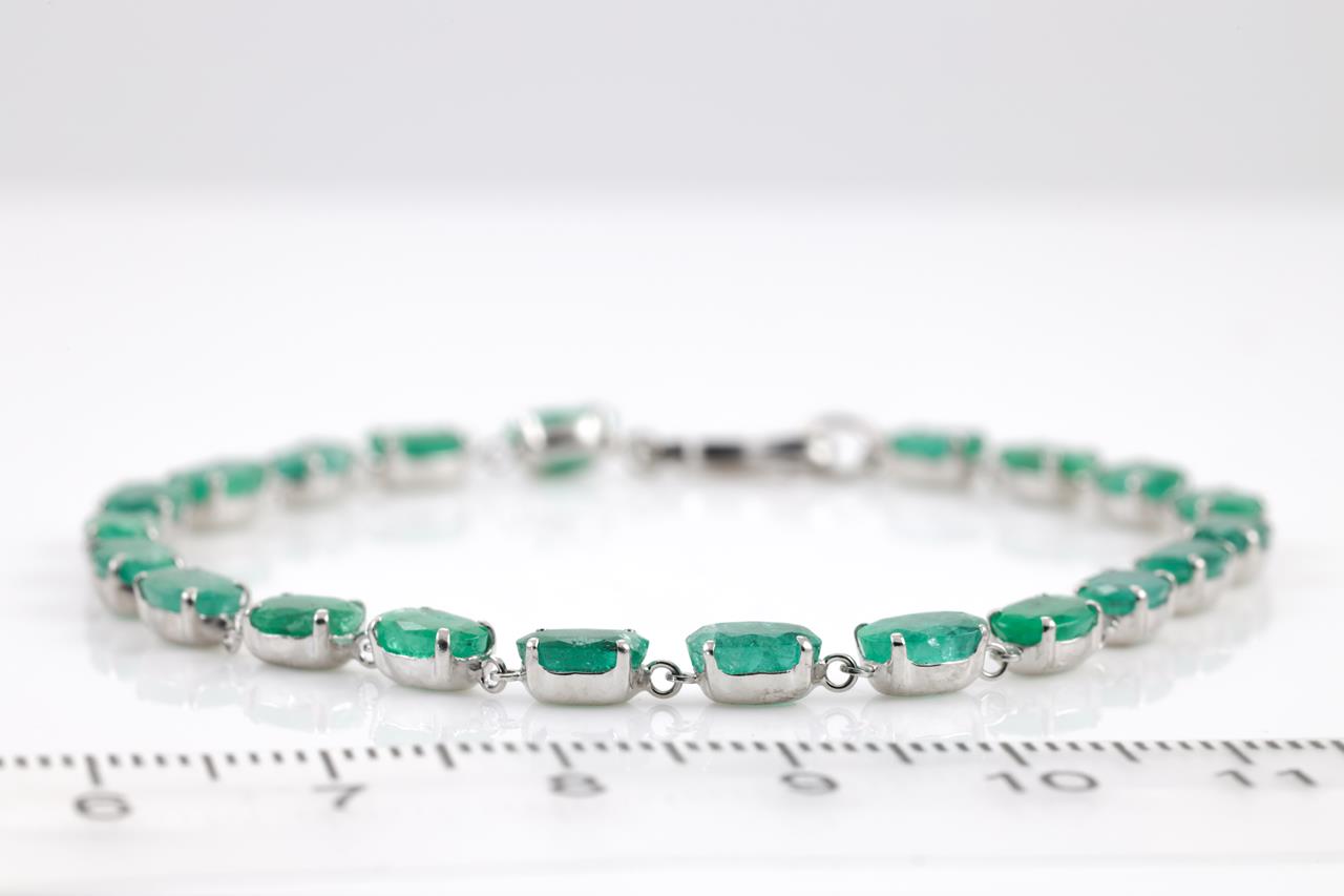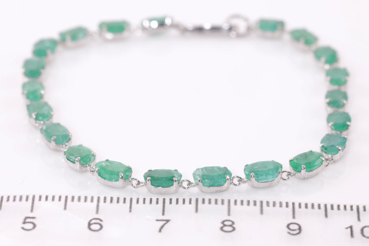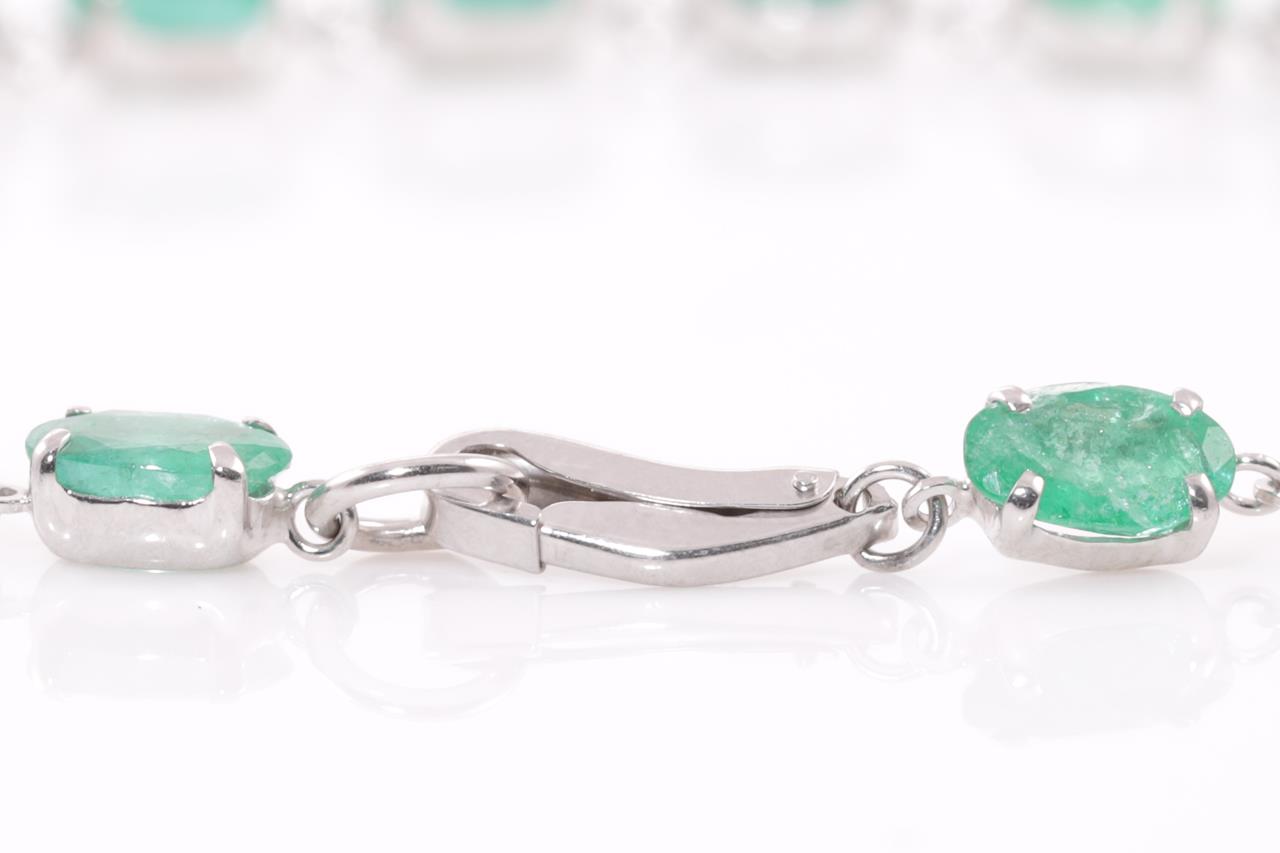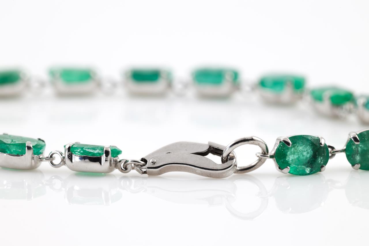 Emerald bracelet with oval shape Emeralds totalling 9.02cts. Platinum. Length: 18cm. Weight: 5.3g (Pre-owned)